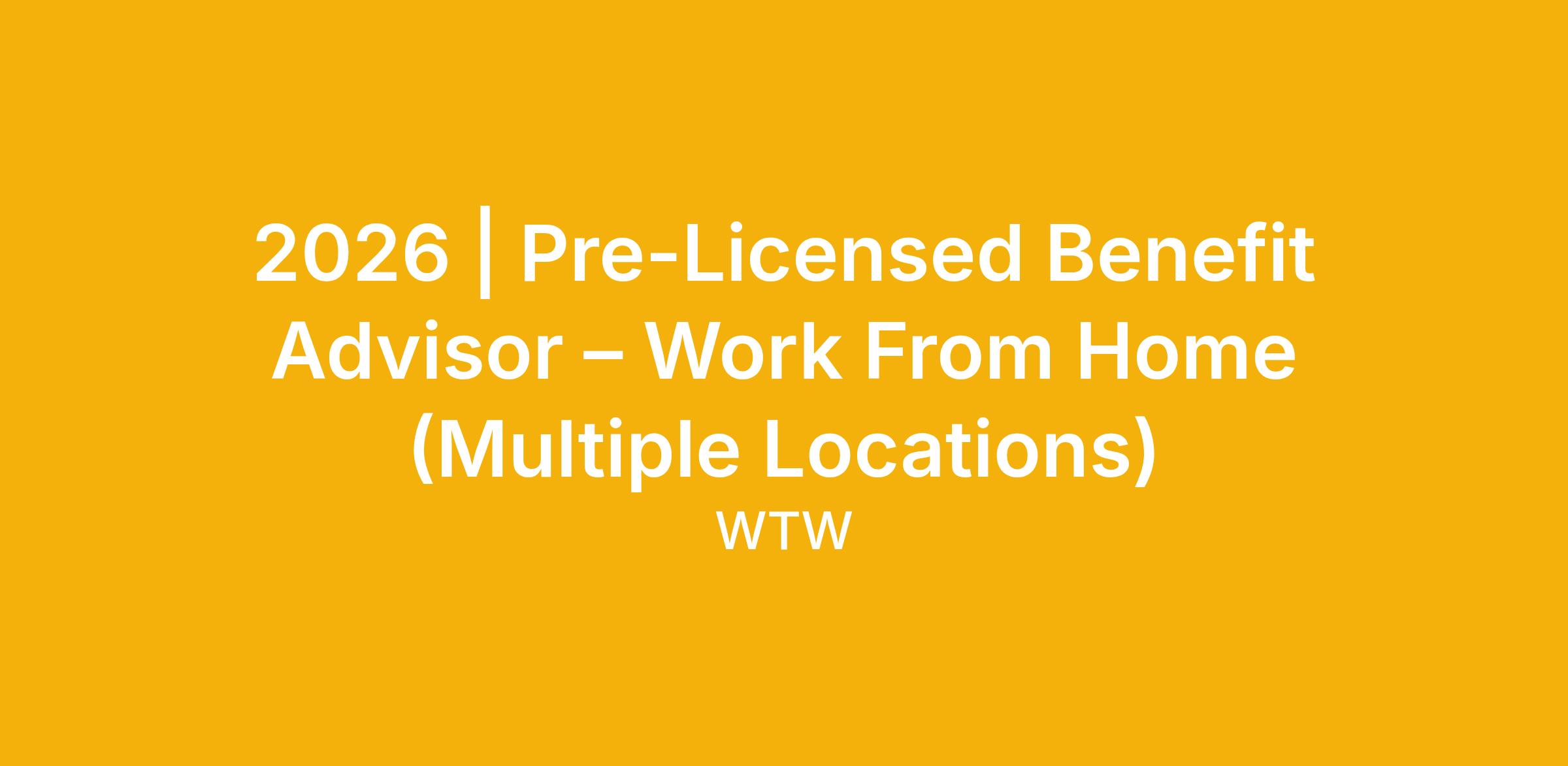 WTW operates in a highly regulated environment; you will be required to complete an extensive background check in order to be licensed as a Benefit Advisor.