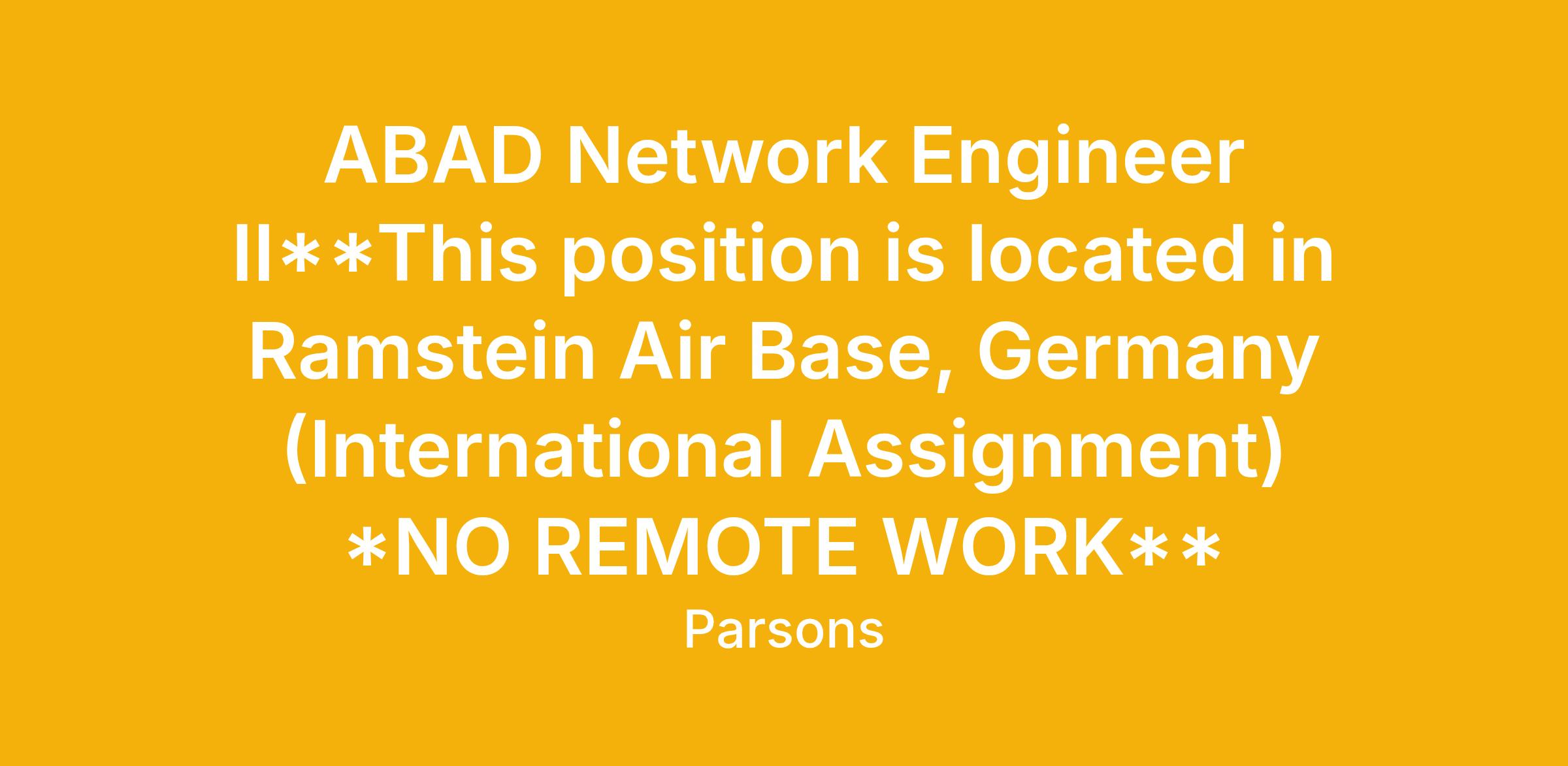 Parsons is looking for an amazingly talented Network Engineer II to join our team! In this role you will get to provide specifications and detailed schematics for network architecture. **This position is located in Ramstein Air Base, Germany (International Assignment) *NO REMOTE WORK**