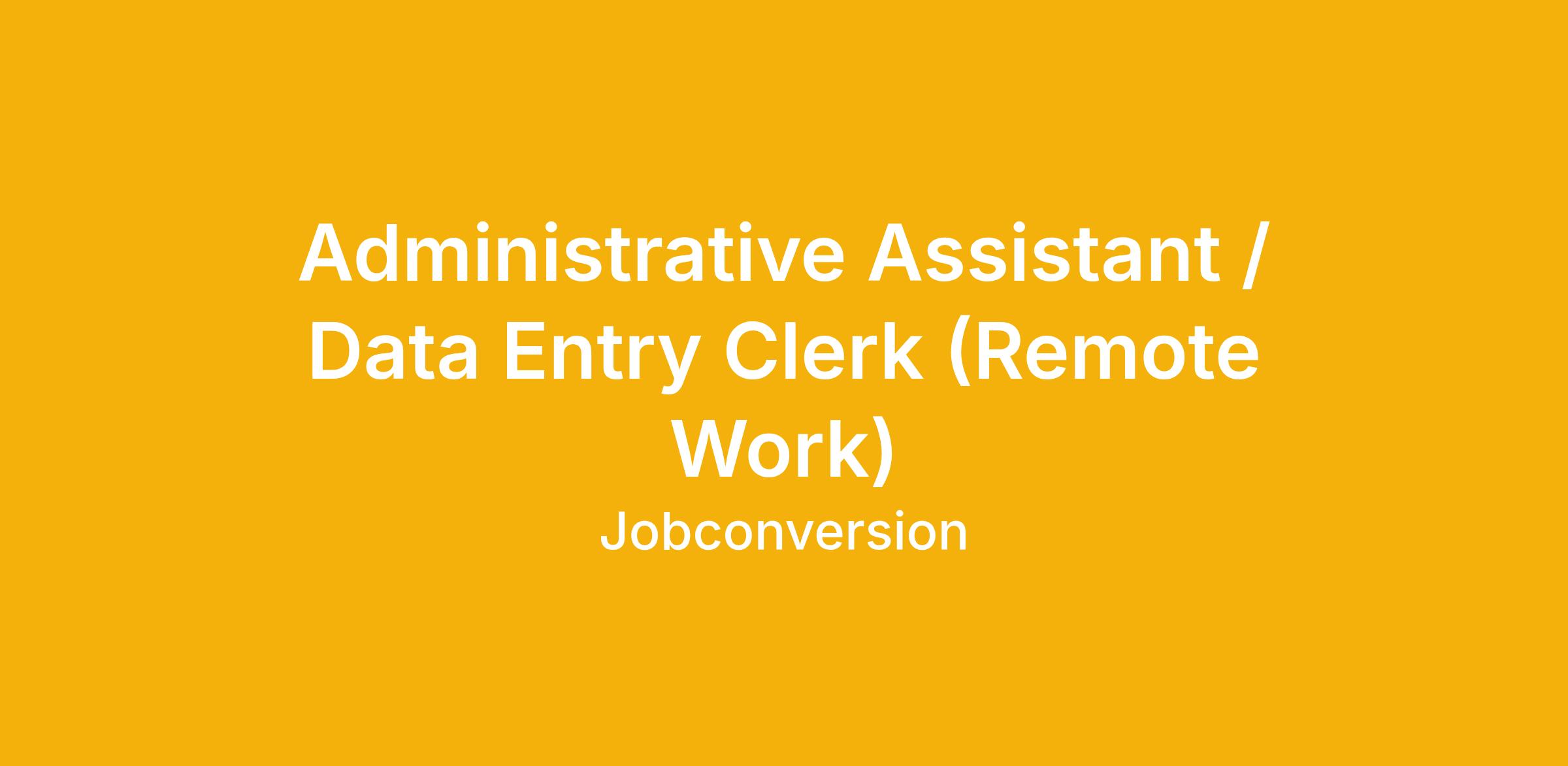 Administrative Assistant / Data Entry Clerk (Remote Work)