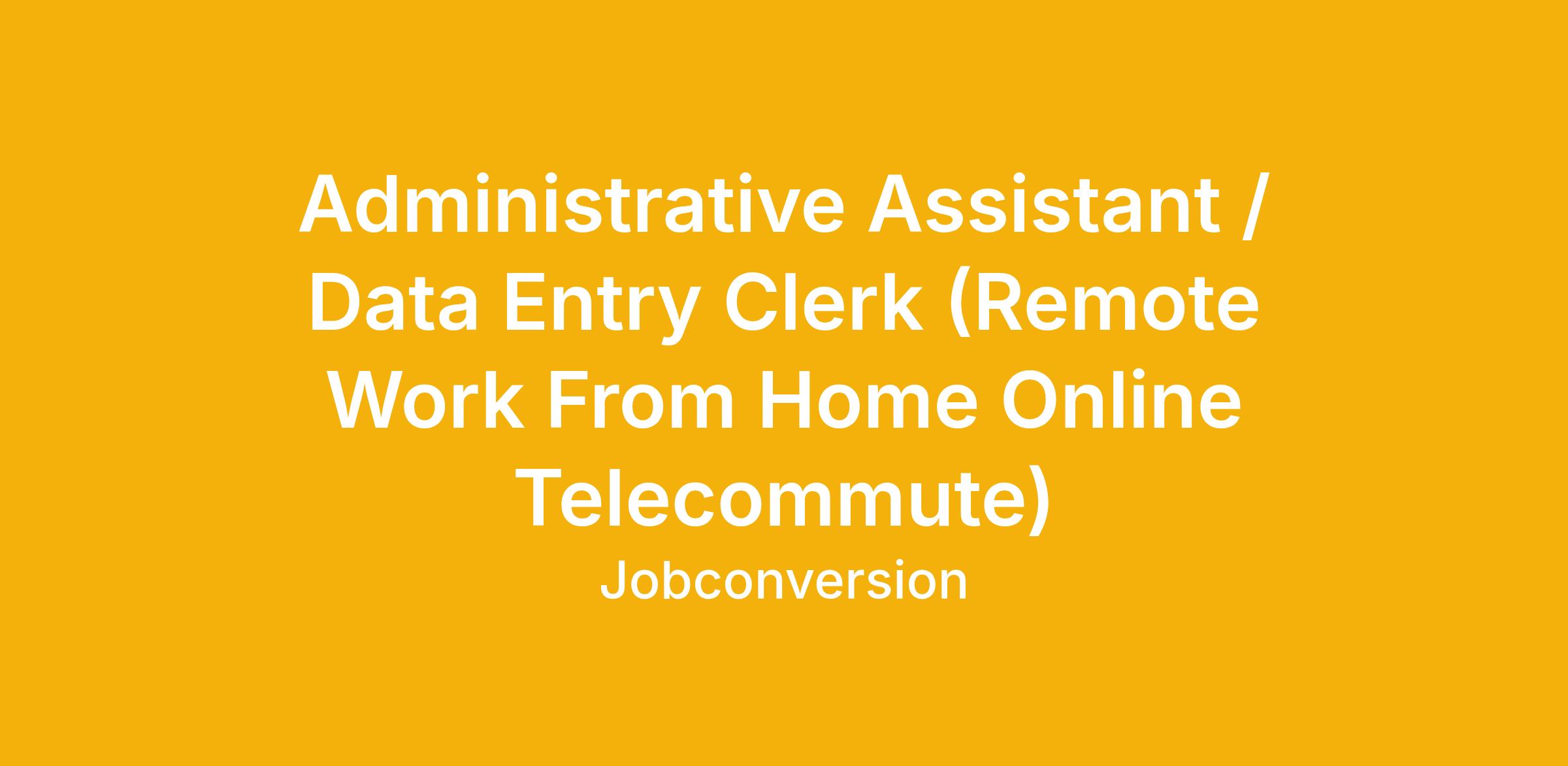 Administrative Assistant / Data Entry Clerk (Remote Work From Home Online Telecommute)
