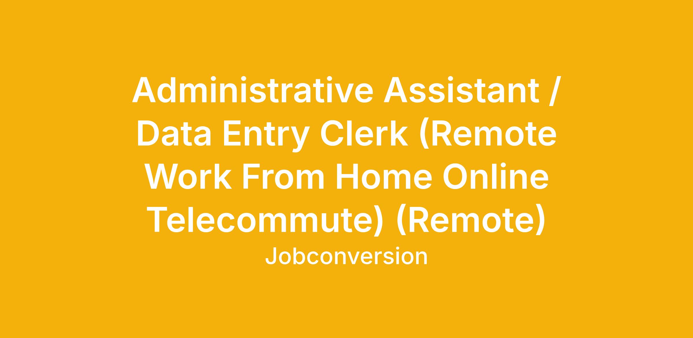 Administrative Assistant / Data Entry Clerk (Remote Work From Home Online Telecommute) (Remote)