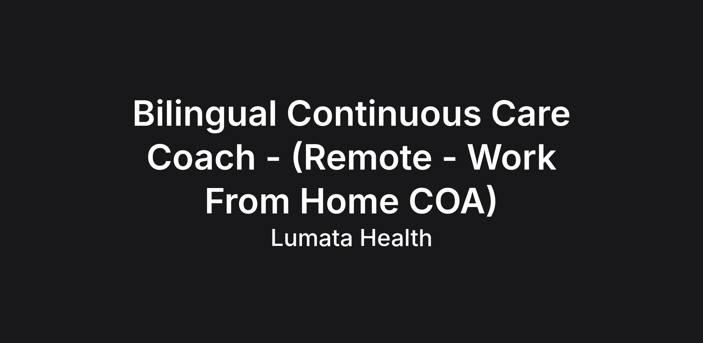 Position: Bilingual Continuous Care Coach - (Remote - Work From Home COA)