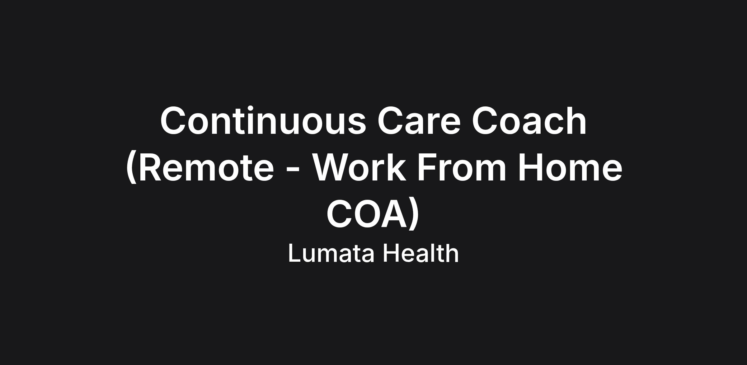 Continuous Care Coach (Remote - Work From Home )
