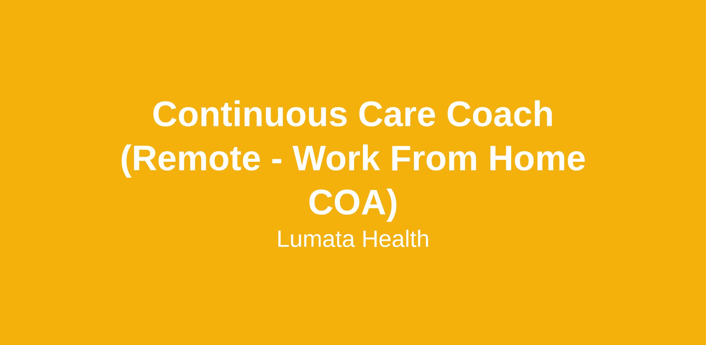 Continuous Care Coach (Remote - Work From Home )