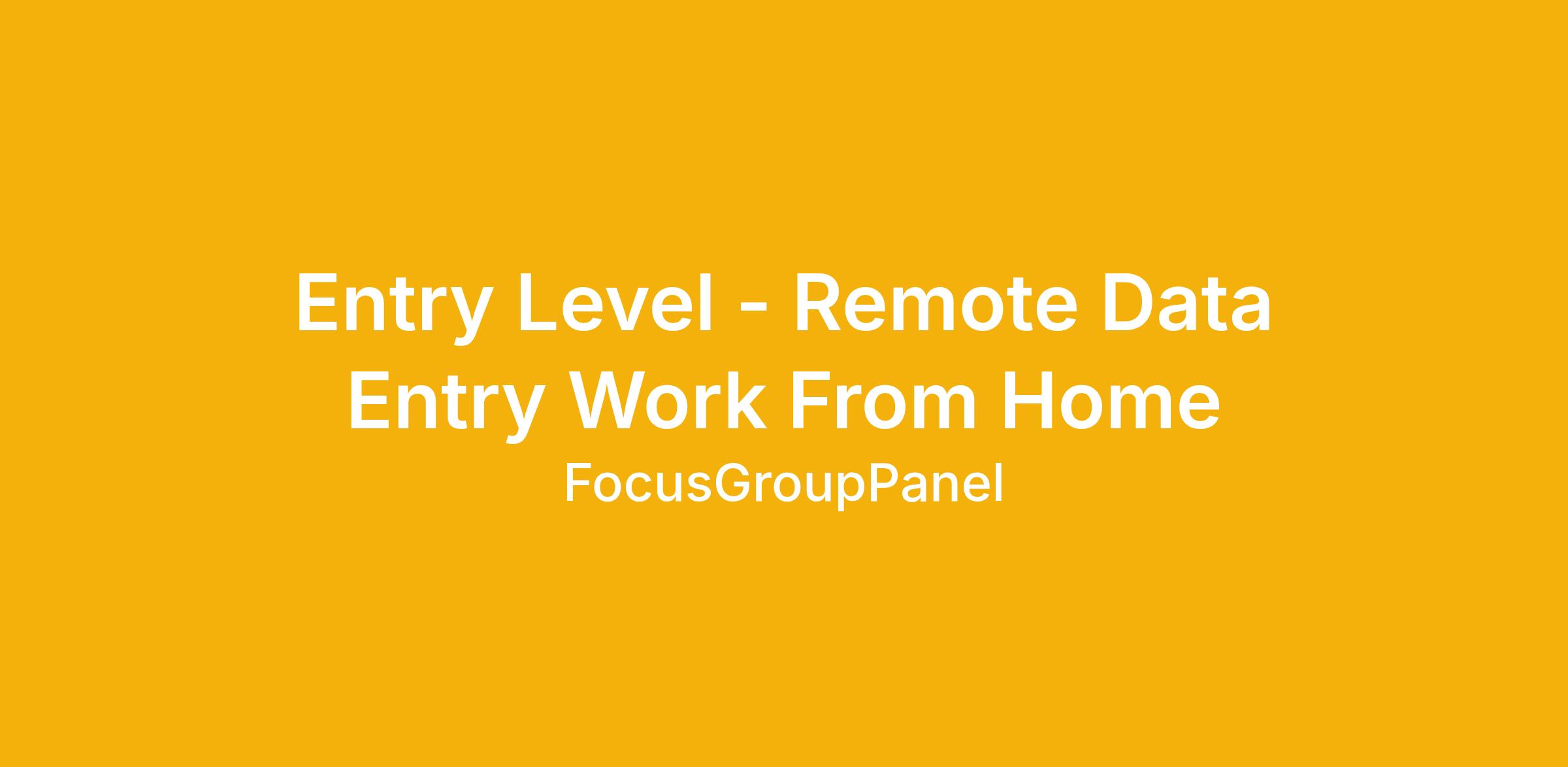 Entry Level - Remote Data Entry Work From Home