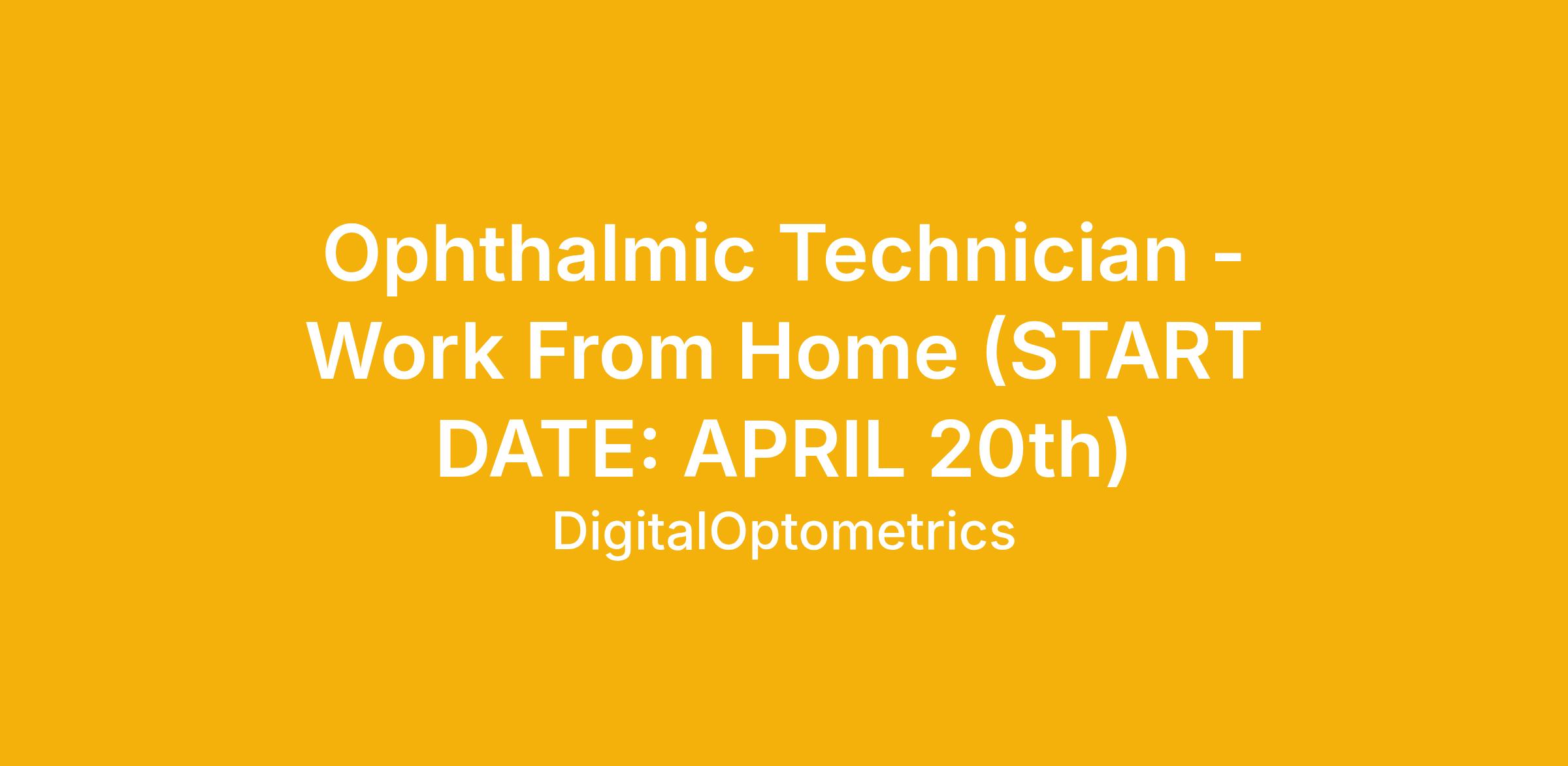 As an Ophthalmic Technician you will work from home: