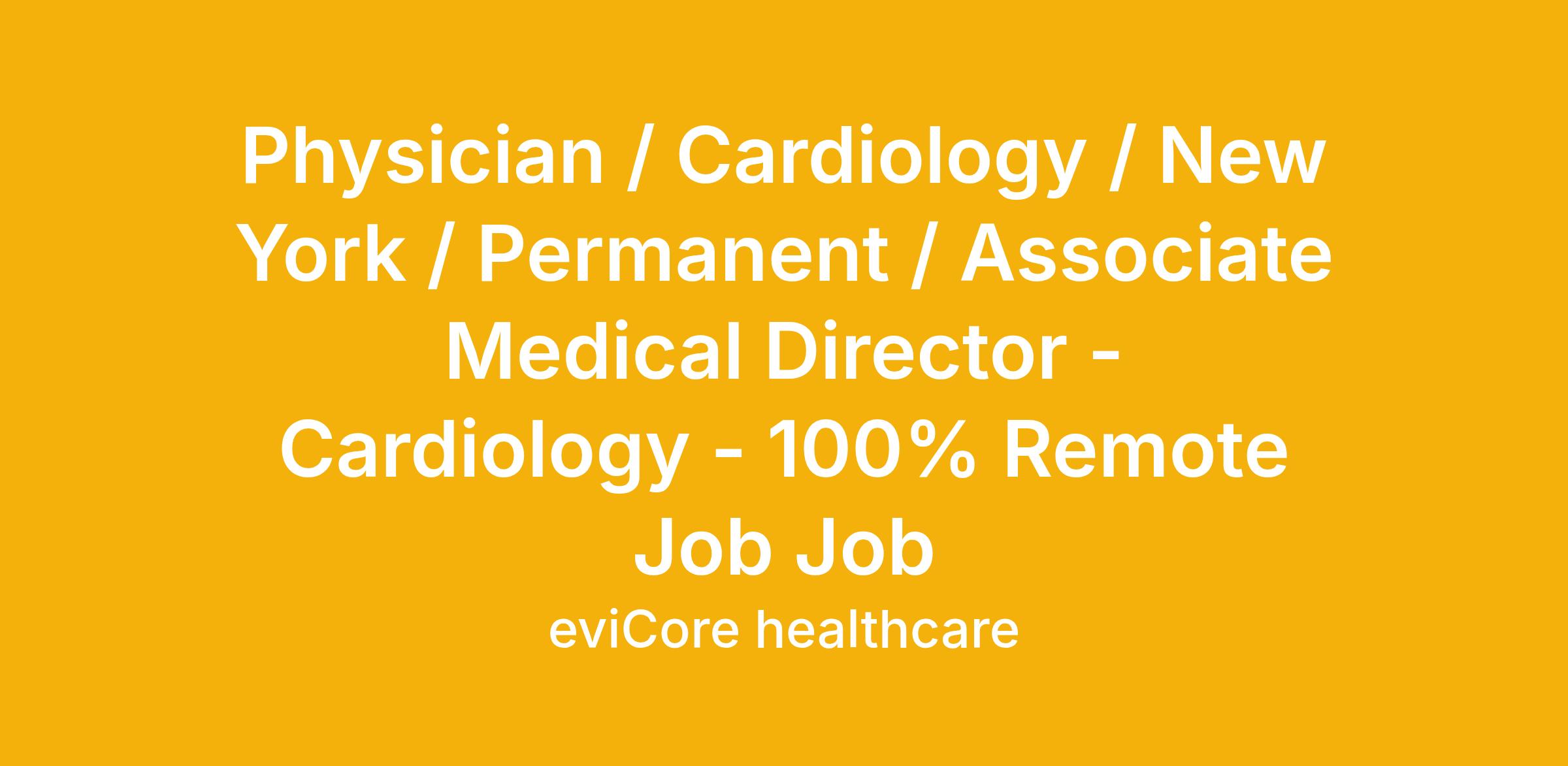 Physician / Cardiology / New York / Permanent / Associate Medical Director - Cardiology - 100% Remote Job Job