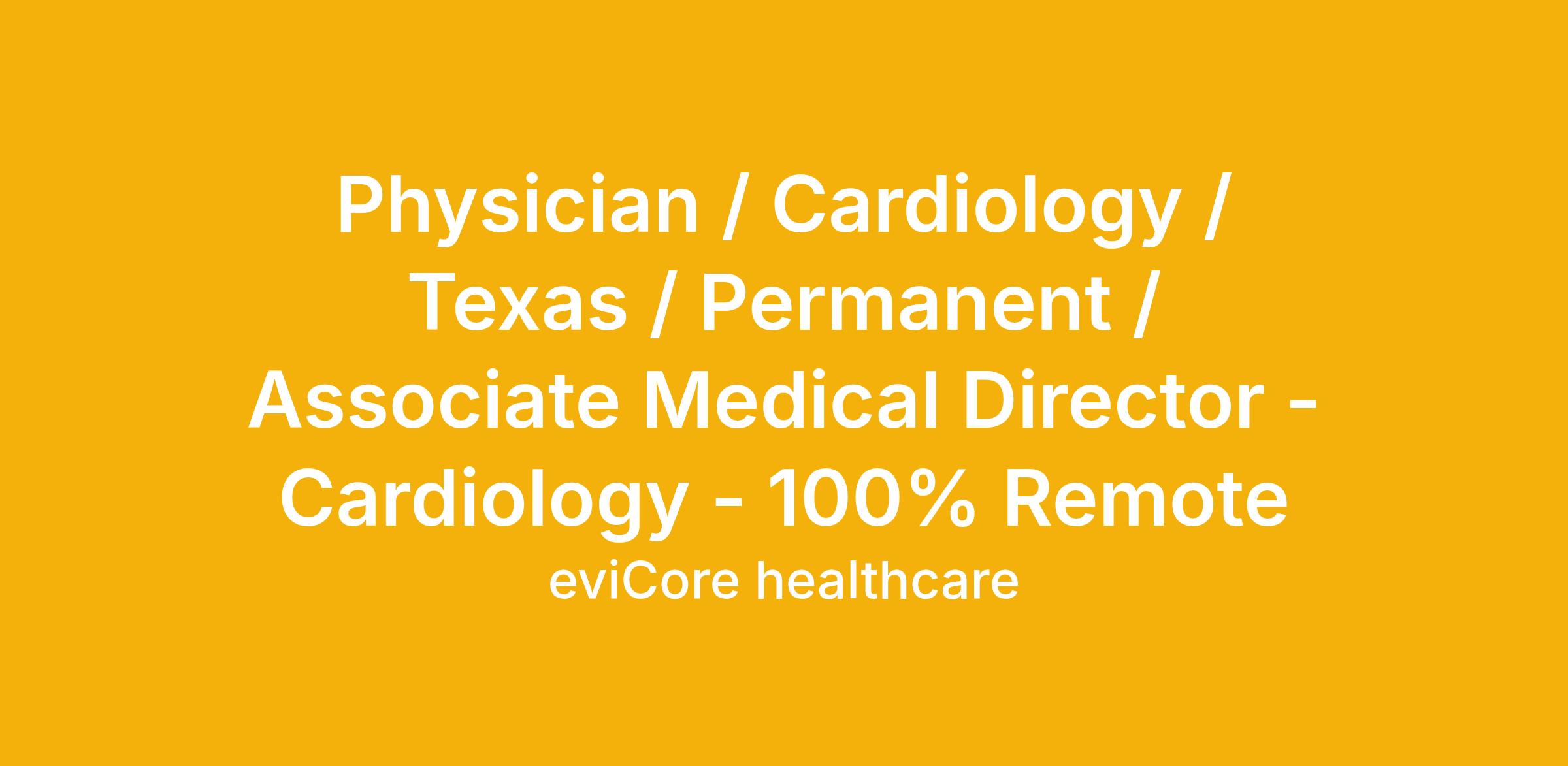Physician / Cardiology / Texas / Permanent / Associate Medical Director - Cardiology - 100% Remote