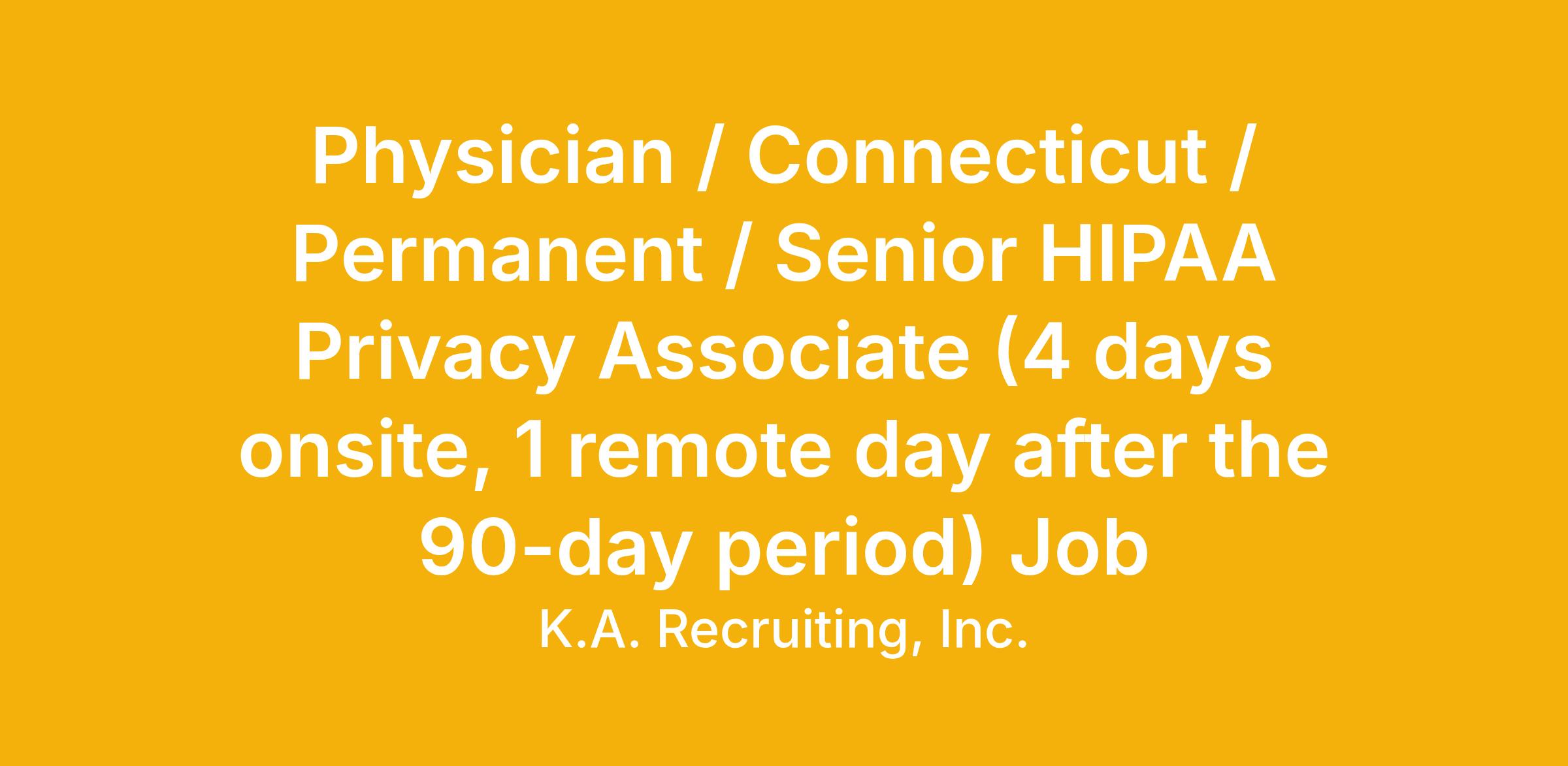 - Three years in a healthcare setting, with at least 3 to 5 of experience in a privacy-related function, preferably in a healthcare or regulatory setting