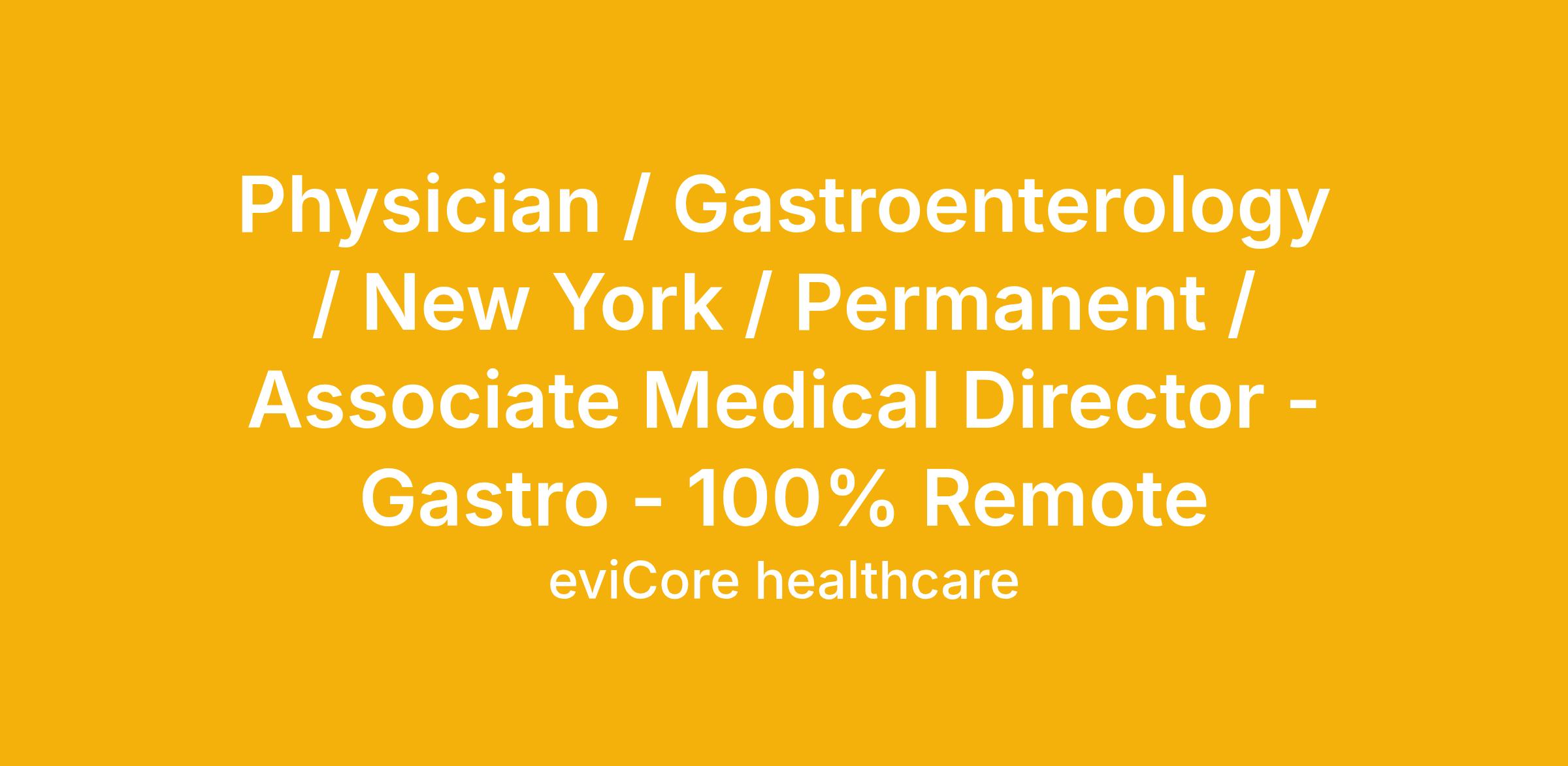 Physician / Gastroenterology / New York / Permanent / Associate Medical Director - Gastro - 100% Remote