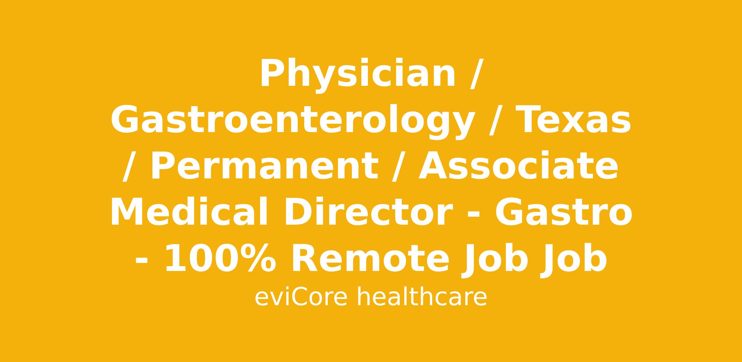 Physician / Gastroenterology / Texas / Permanent / Associate Medical Director - Gastro - 100% Remote Job Job