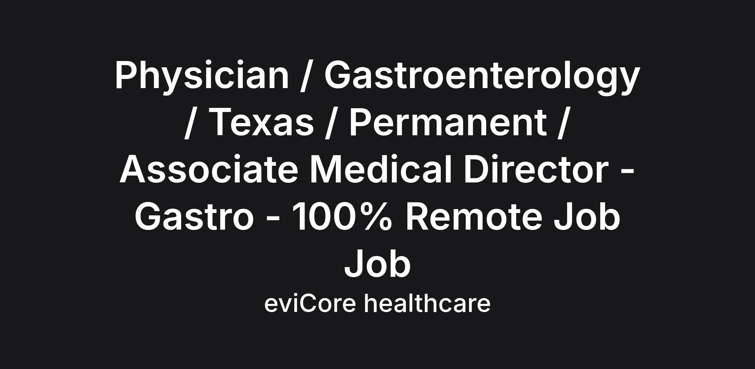 Physician / Gastroenterology / Texas / Permanent / Associate Medical Director - Gastro - 100% Remote Job Job