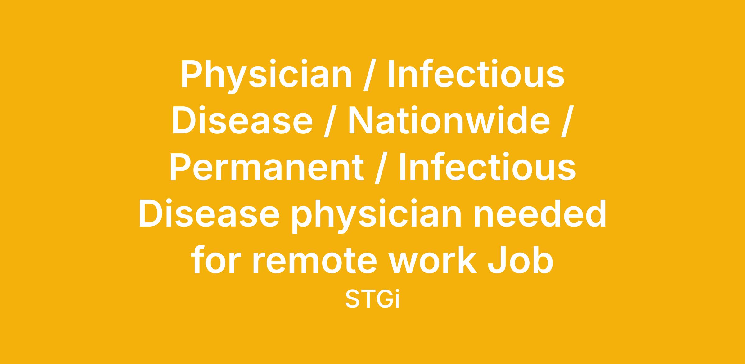 Physician / Infectious Disease / Nationwide / Permanent / Infectious Disease physician needed for remote work Job
