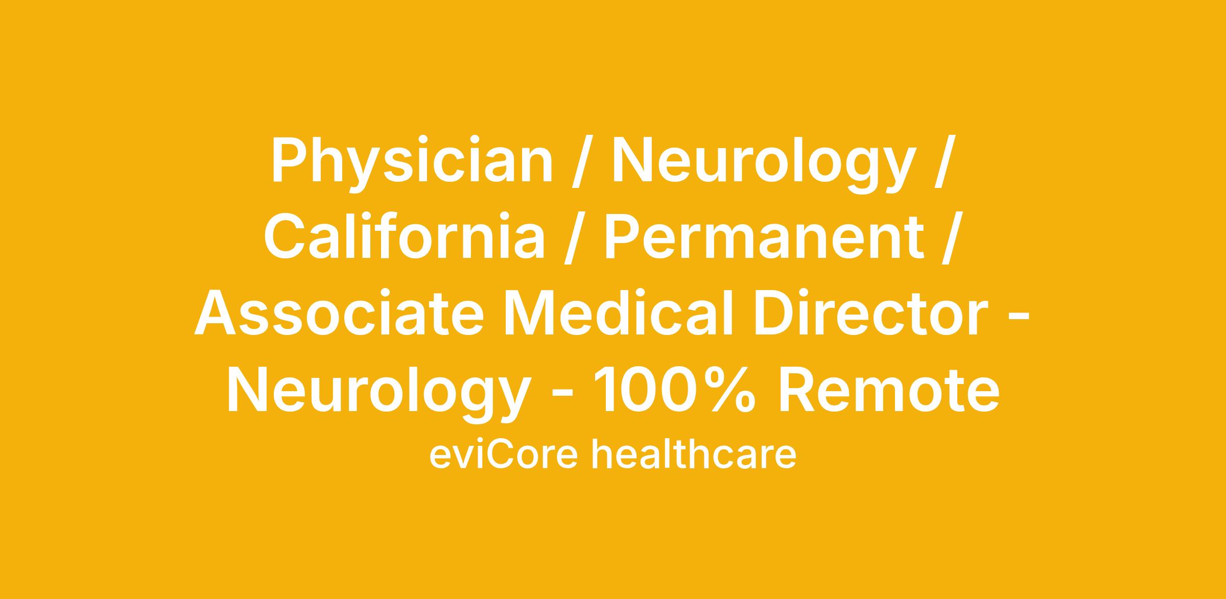 Physician / Neurology / California / Permanent / Associate Medical Director - Neurology - 100% Remote