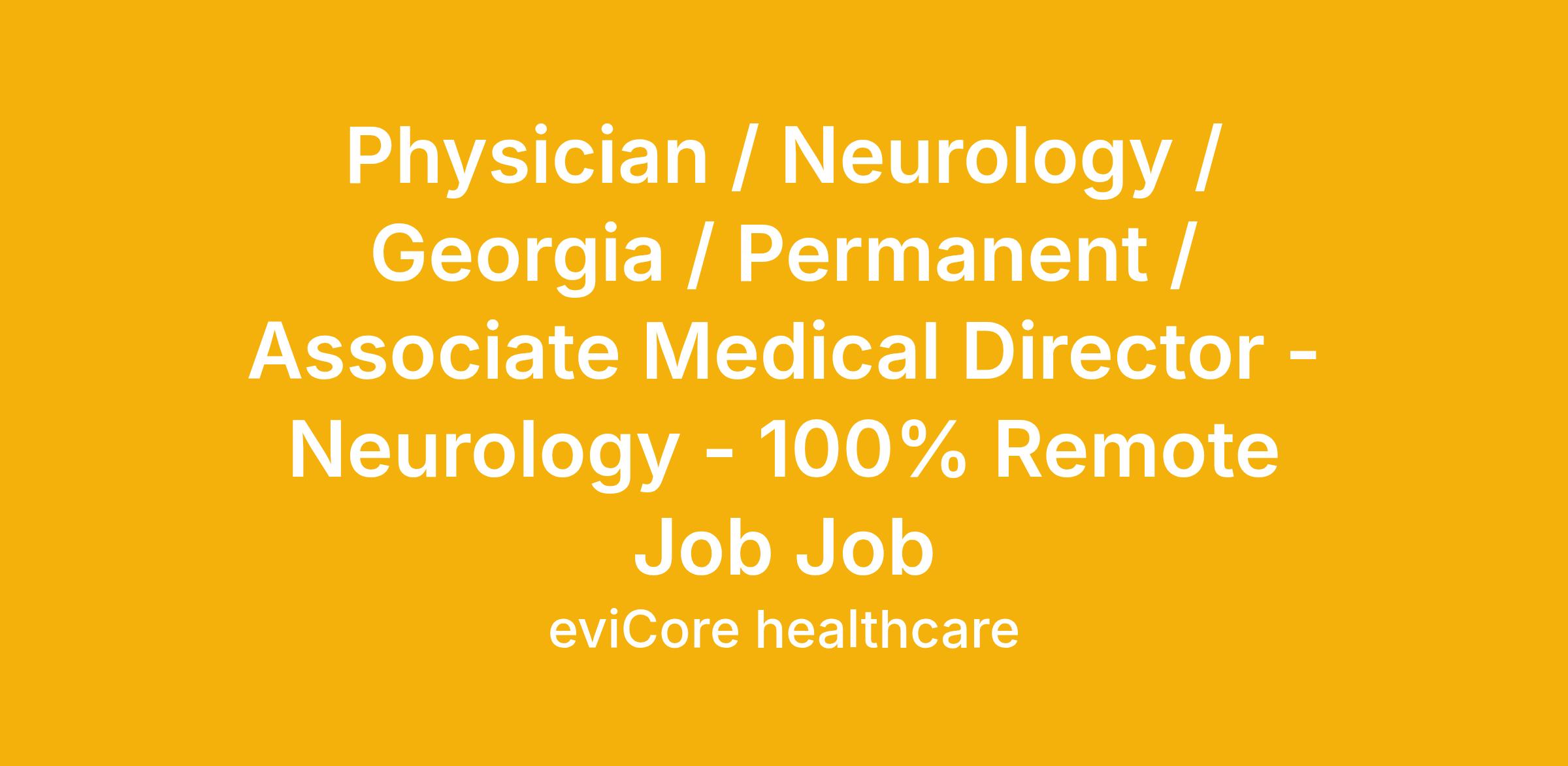Physician / Neurology / Georgia / Permanent / Associate Medical Director - Neurology - 100% Remote Job Job