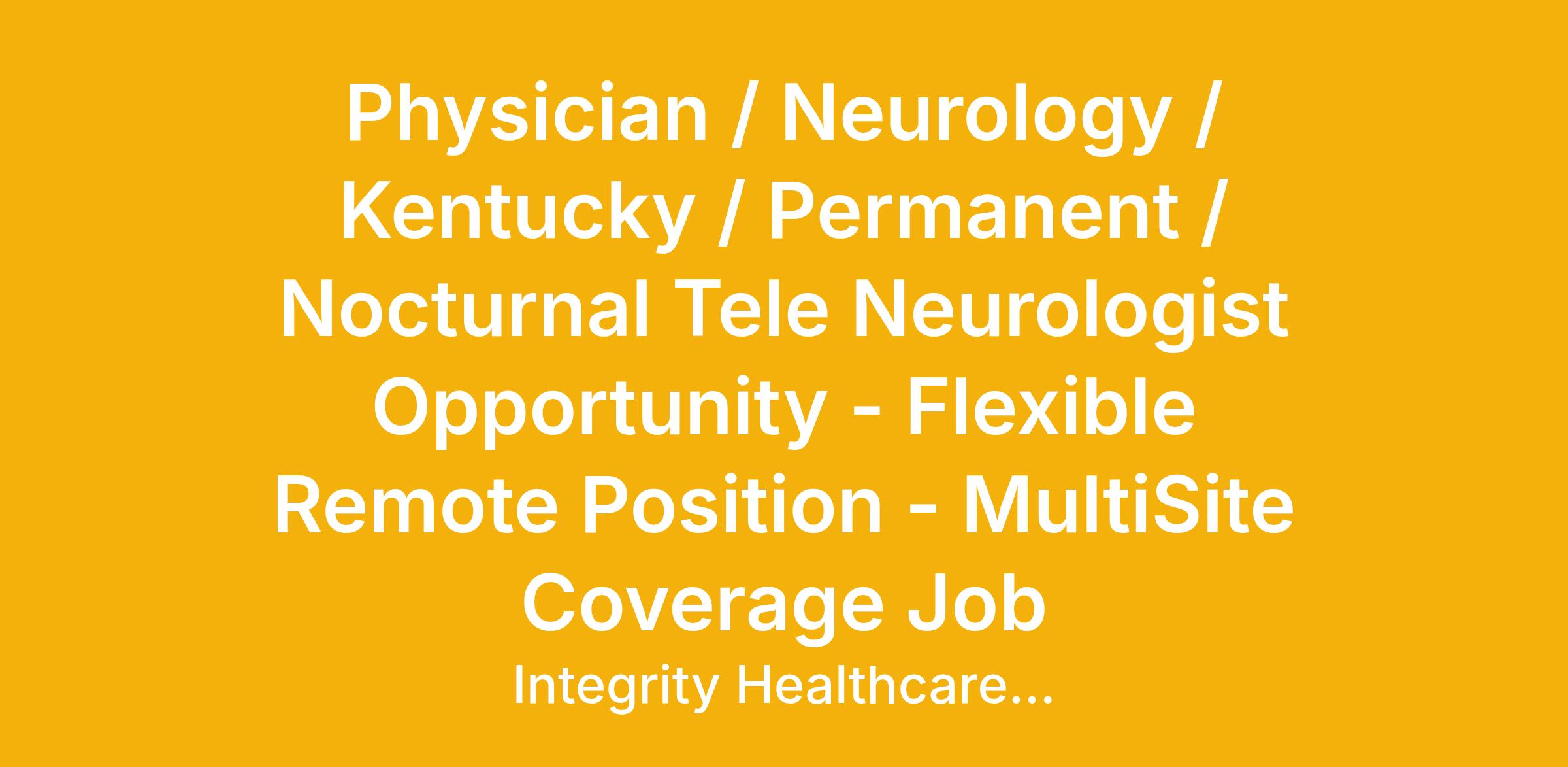 Physician / Neurology / Kentucky / Permanent / Nocturnal Tele Neurologist Opportunity - Flexible Remote Position - MultiSite Coverage Job