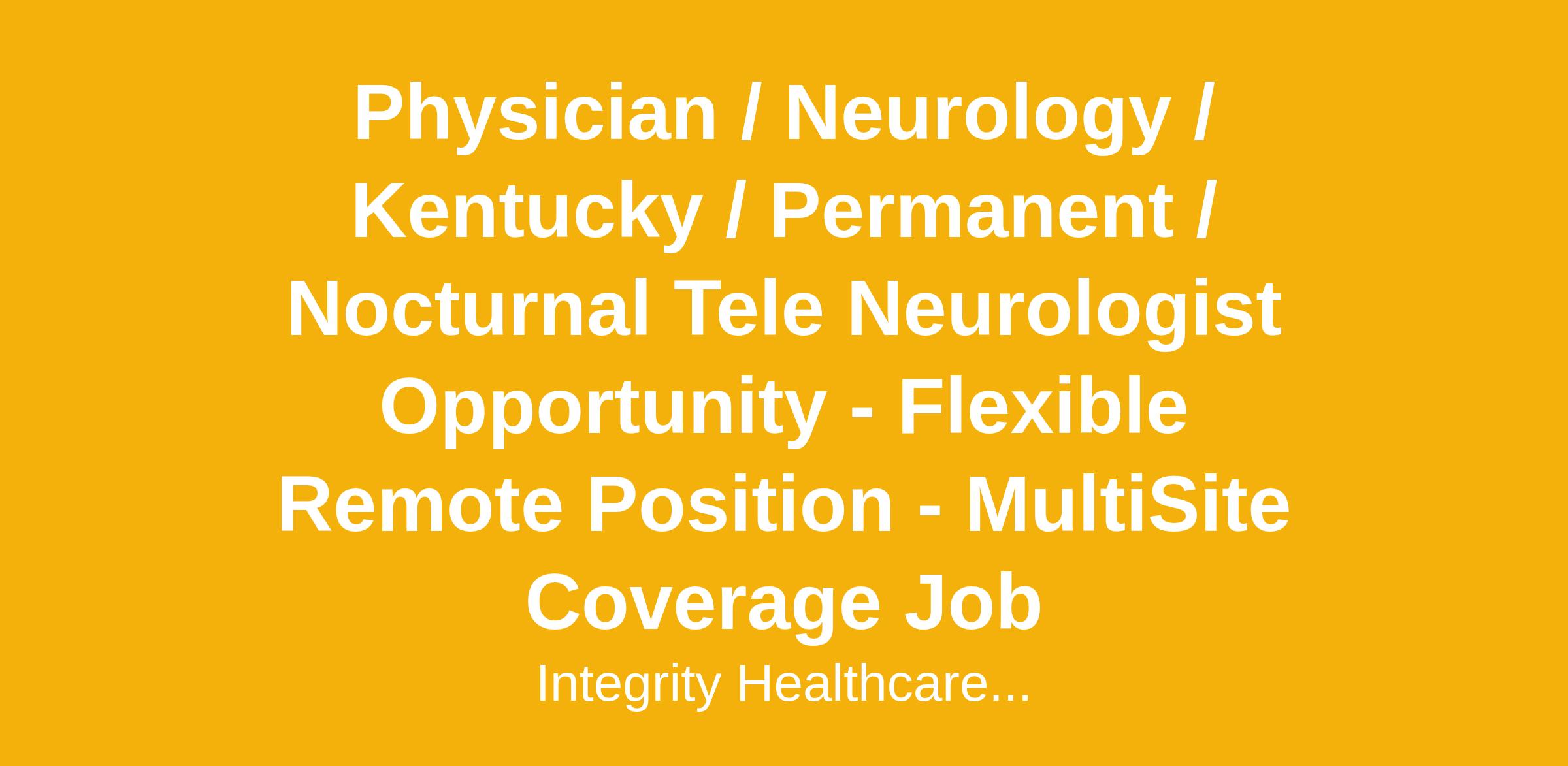 Physician / Neurology / Kentucky / Permanent / Nocturnal Tele Neurologist Opportunity - Flexible Remote Position - MultiSite Coverage Job