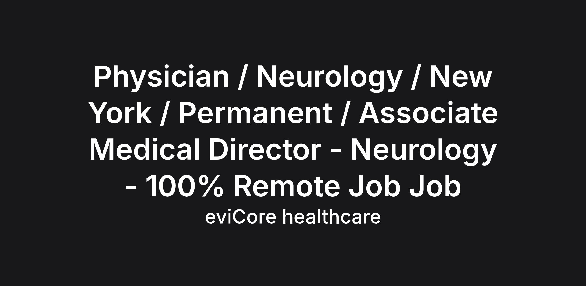 Physician / Neurology / New York / Permanent / Associate Medical Director - Neurology - 100% Remote Job Job