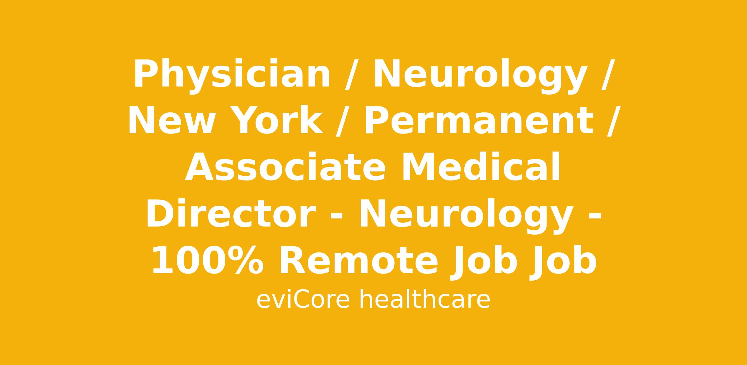 Physician / Neurology / New York / Permanent / Associate Medical Director - Neurology - 100% Remote Job Job