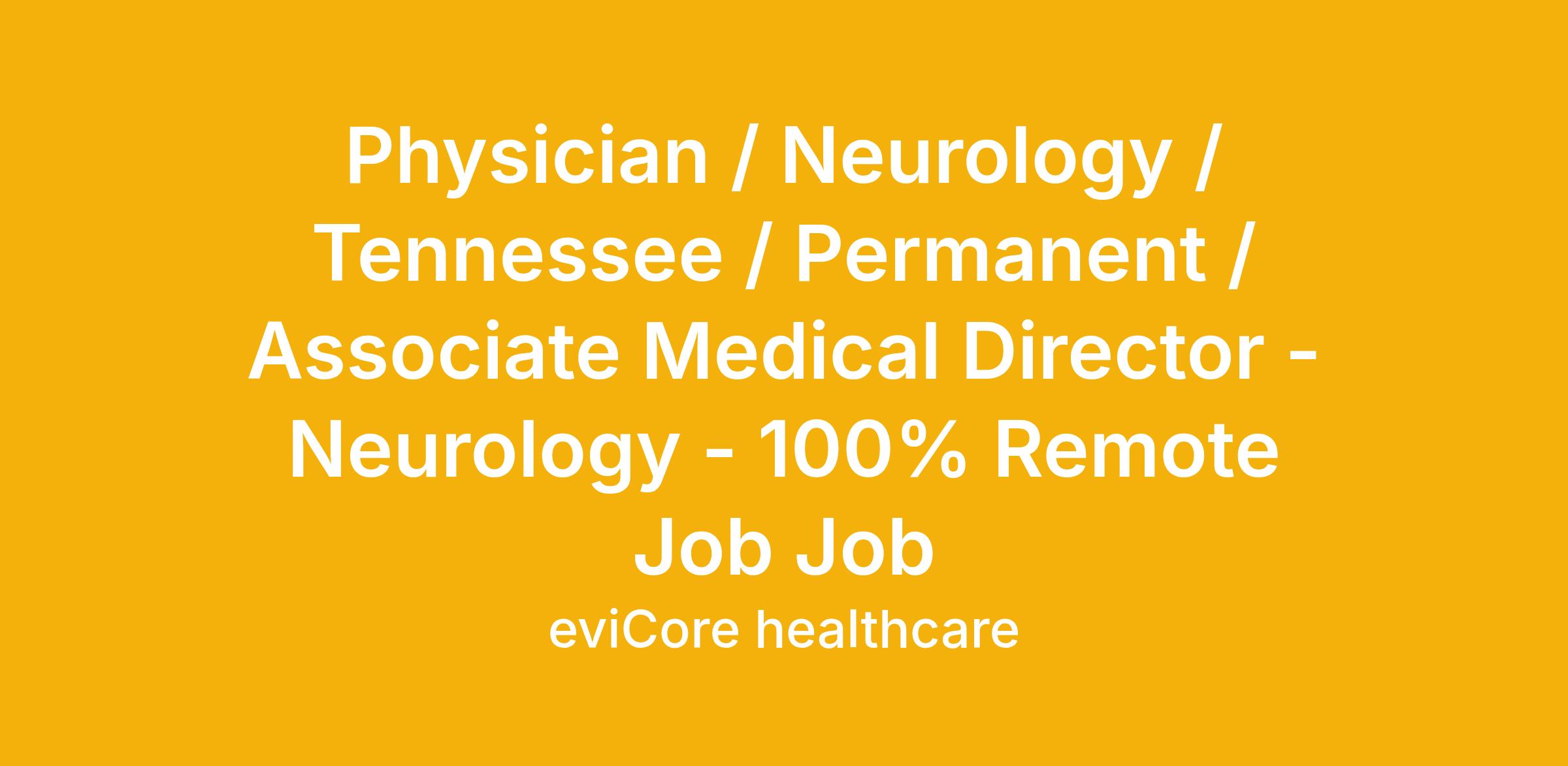 Physician / Neurology / Tennessee / Permanent / Associate Medical Director - Neurology - 100% Remote Job Job