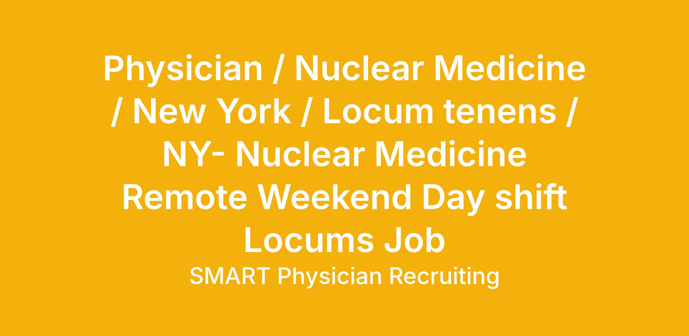 Physician / Nuclear Medicine / New York / Locum tenens / NY- Nuclear Medicine Remote Weekend Day shift Locums Job