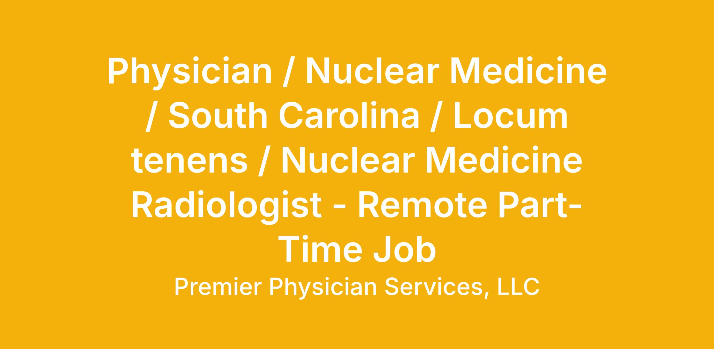 Physician / Nuclear Medicine / South Carolina / Locum tenens / Nuclear Medicine Radiologist - Remote Part-Time Job