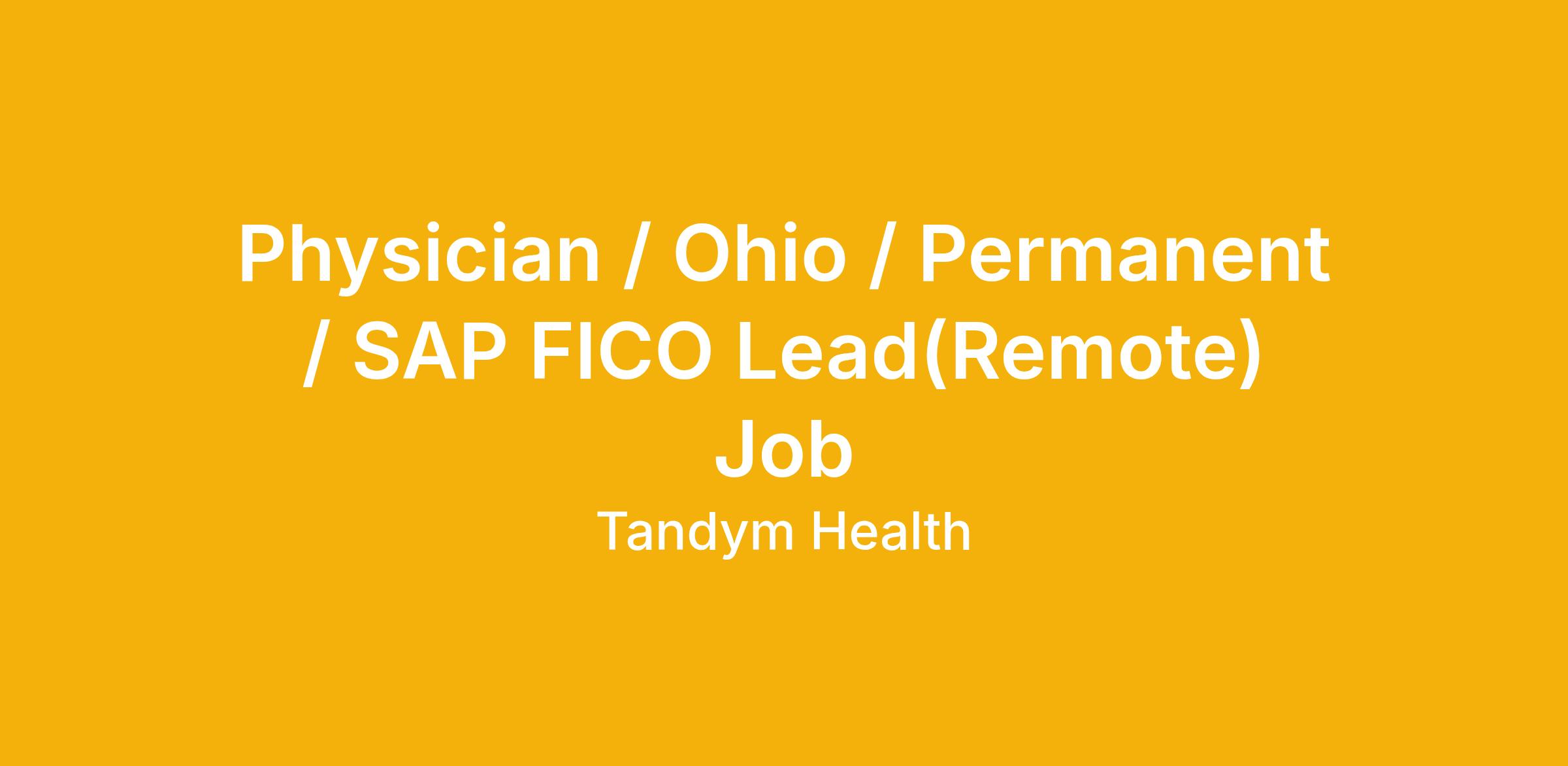 Physician / Ohio / Permanent / SAP FICO Lead(Remote) Job
