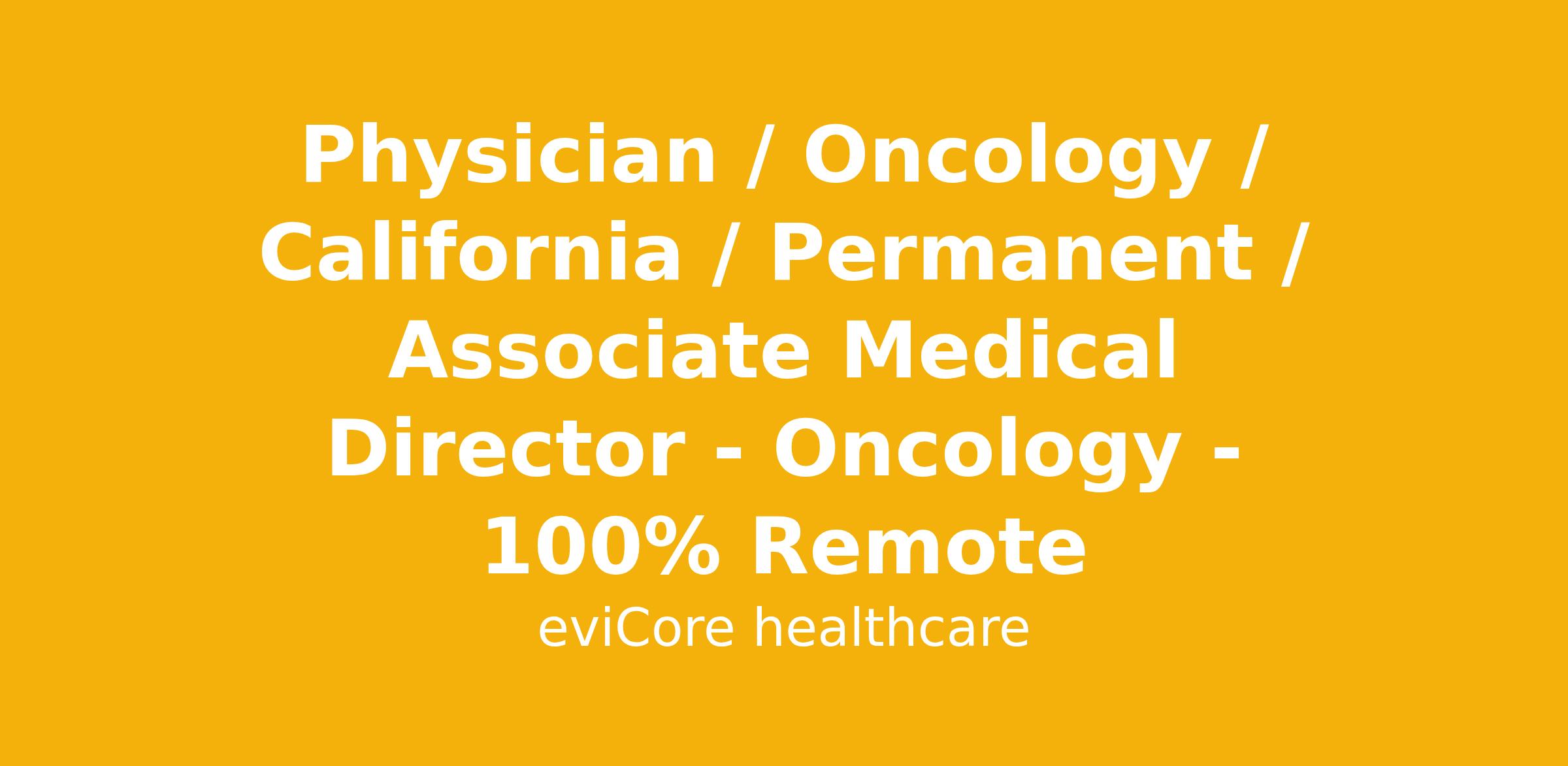 Physician / Oncology / California / Permanent / Associate Medical Director - Oncology - 100% Remote