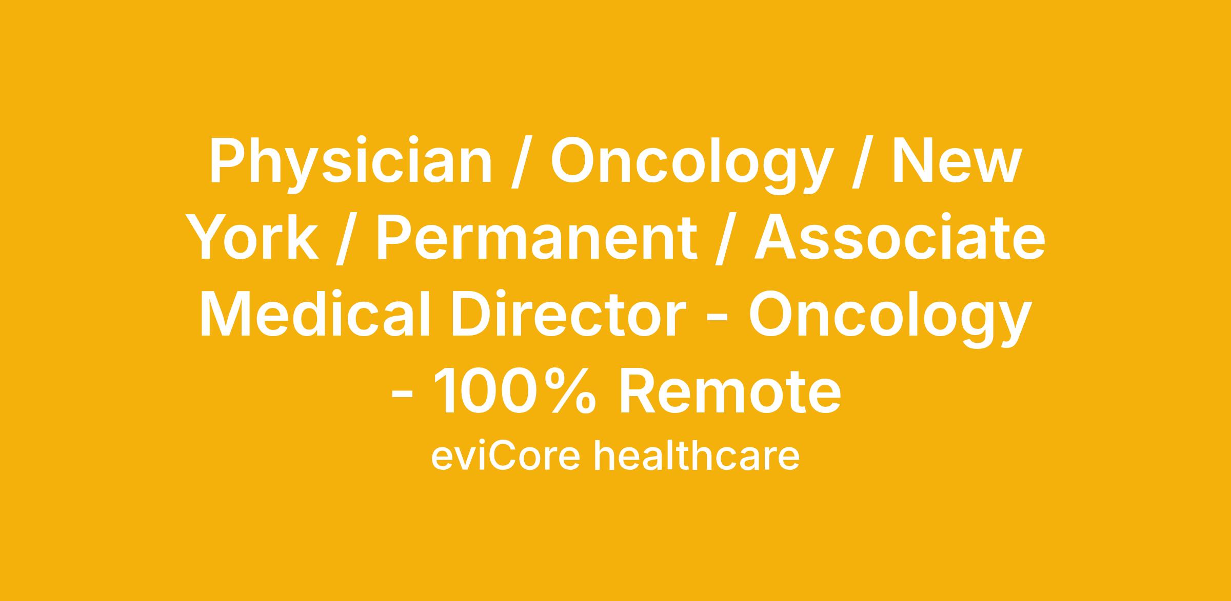 Physician / Oncology / New York / Permanent / Associate Medical Director - Oncology - 100% Remote