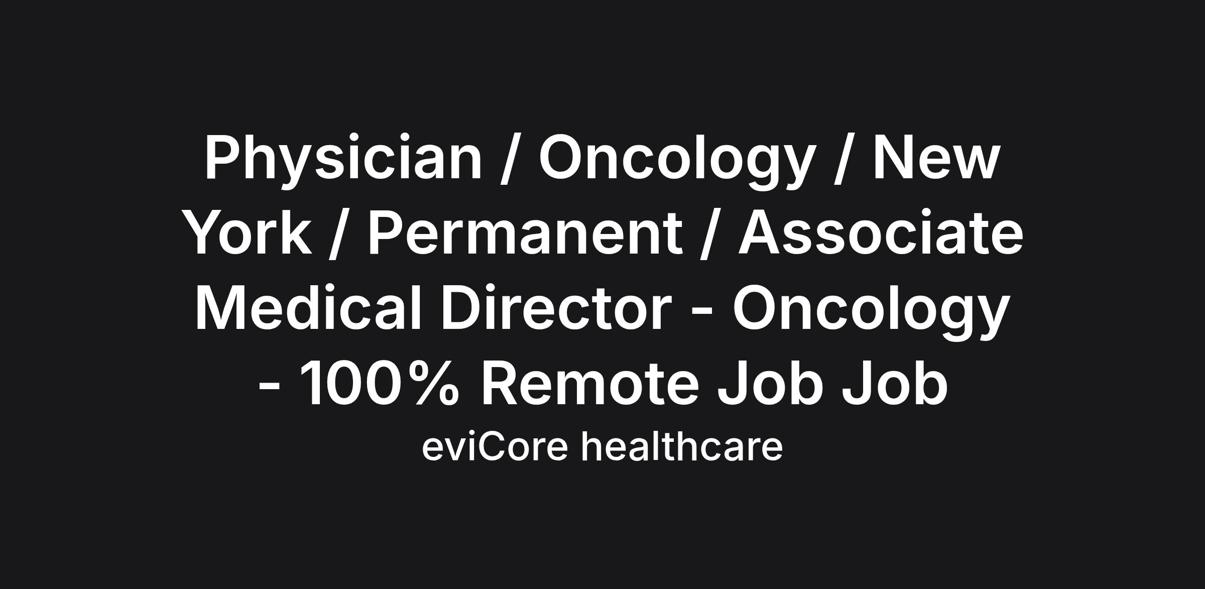 Physician / Oncology / New York / Permanent / Associate Medical Director - Oncology - 100% Remote Job Job