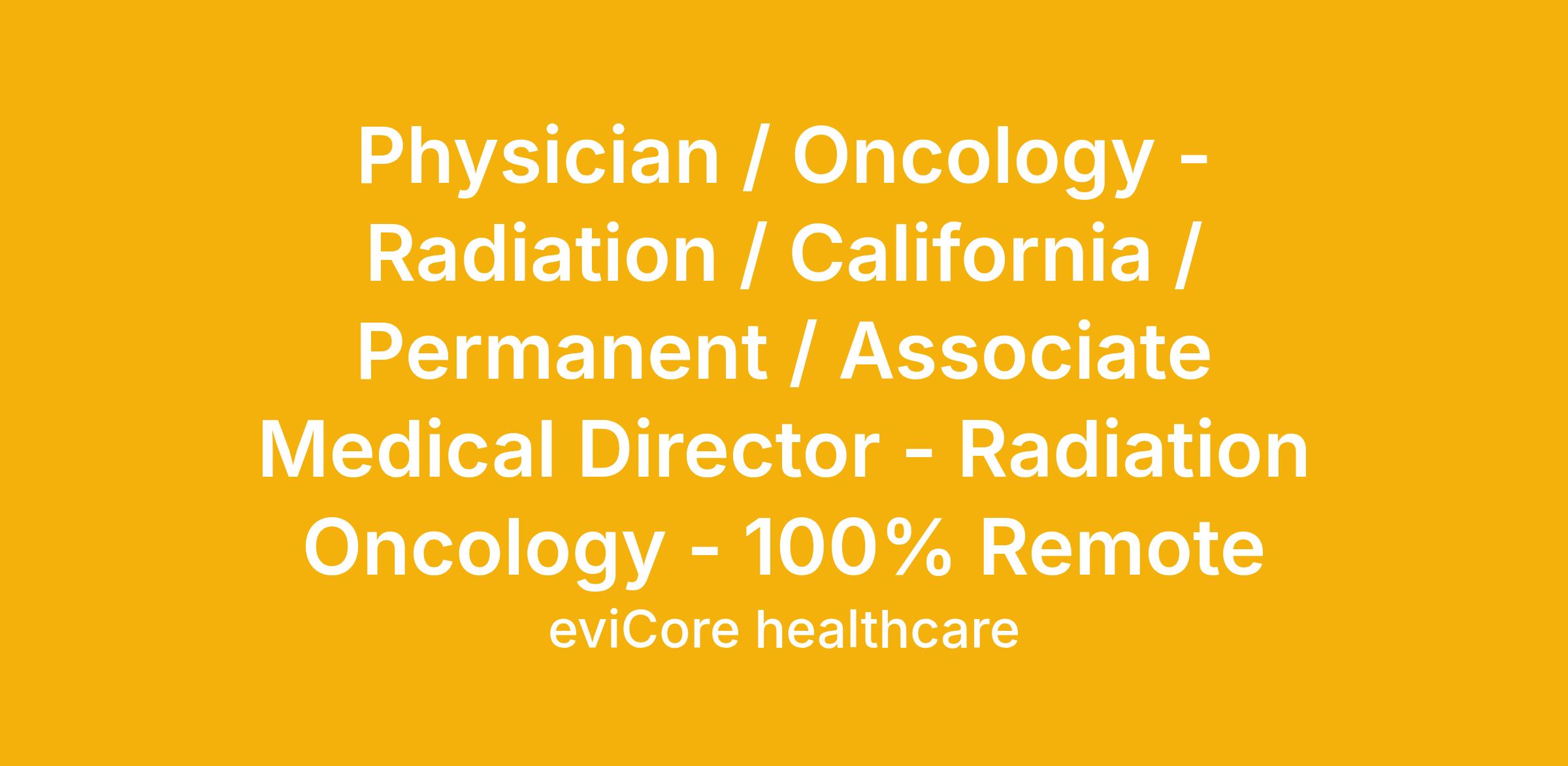 Physician / Oncology - Radiation / California / Permanent / Associate Medical Director - Radiation Oncology - 100% Remote