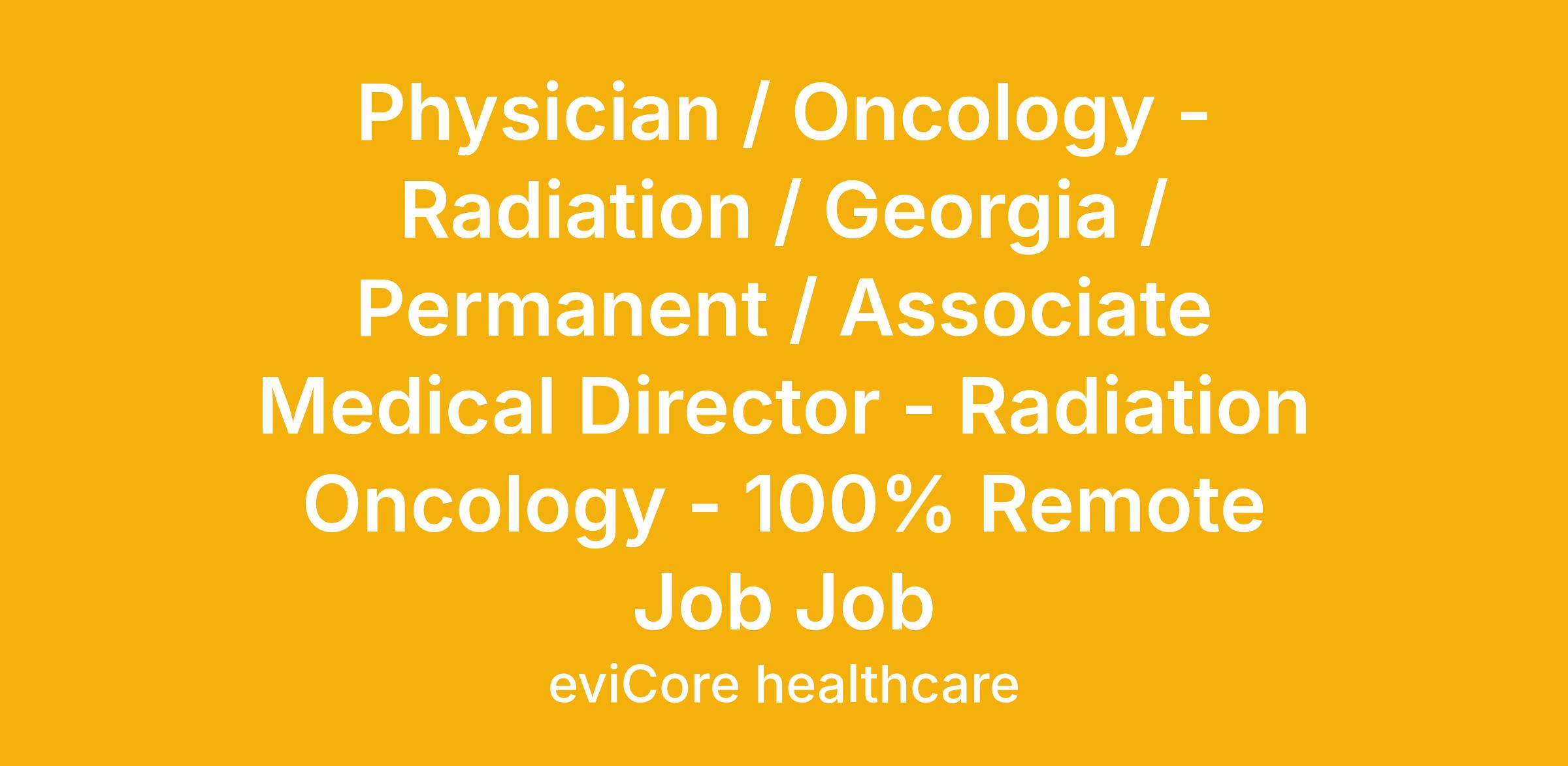 Physician / Oncology - Radiation / Georgia / Permanent / Associate Medical Director - Radiation Oncology - 100% Remote Job Job