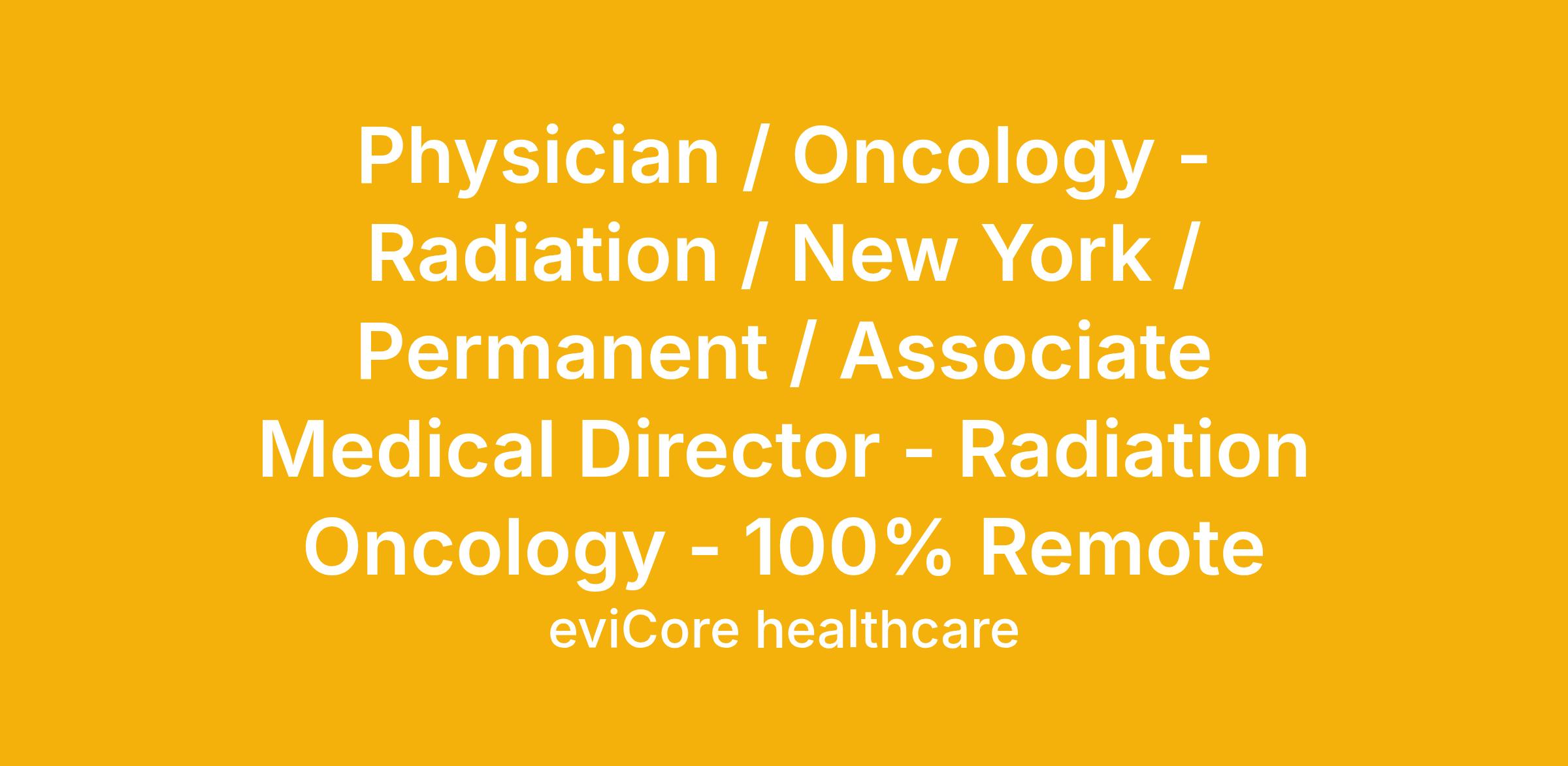 Physician / Oncology - Radiation / New York / Permanent / Associate Medical Director - Radiation Oncology - 100% Remote