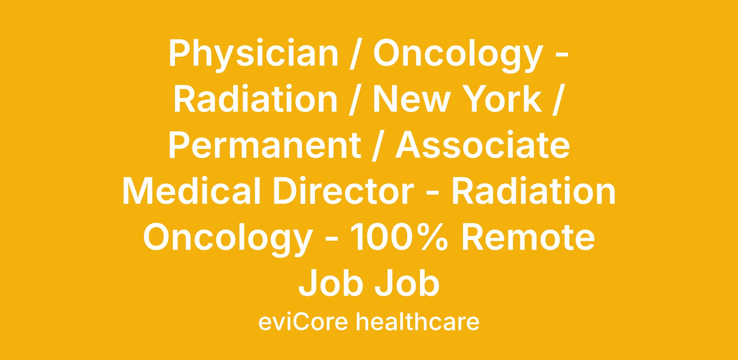 Physician / Oncology - Radiation / New York / Permanent / Associate Medical Director - Radiation Oncology - 100% Remote Job Job