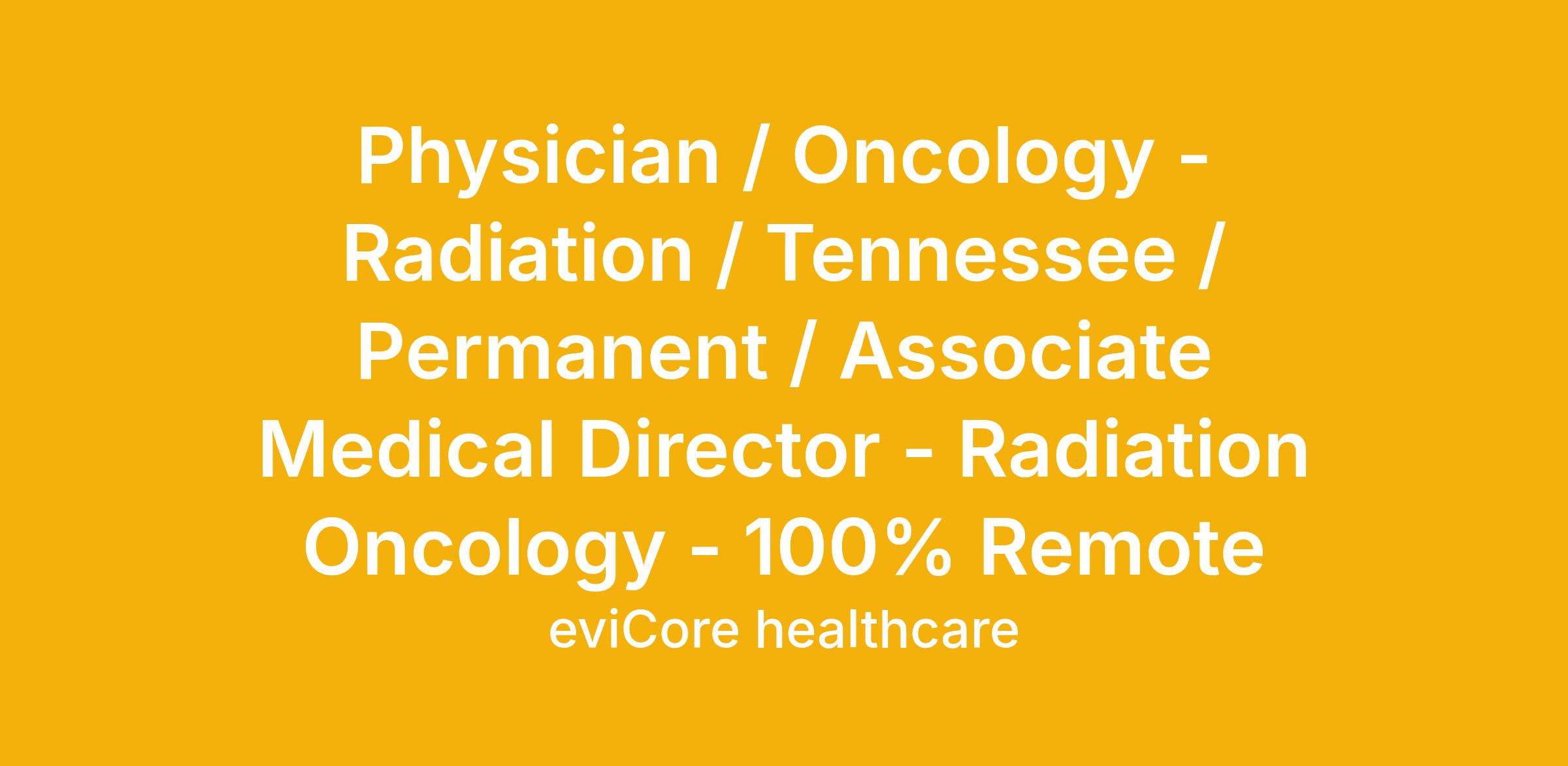 Physician / Oncology - Radiation / Tennessee / Permanent / Associate Medical Director - Radiation Oncology - 100% Remote
