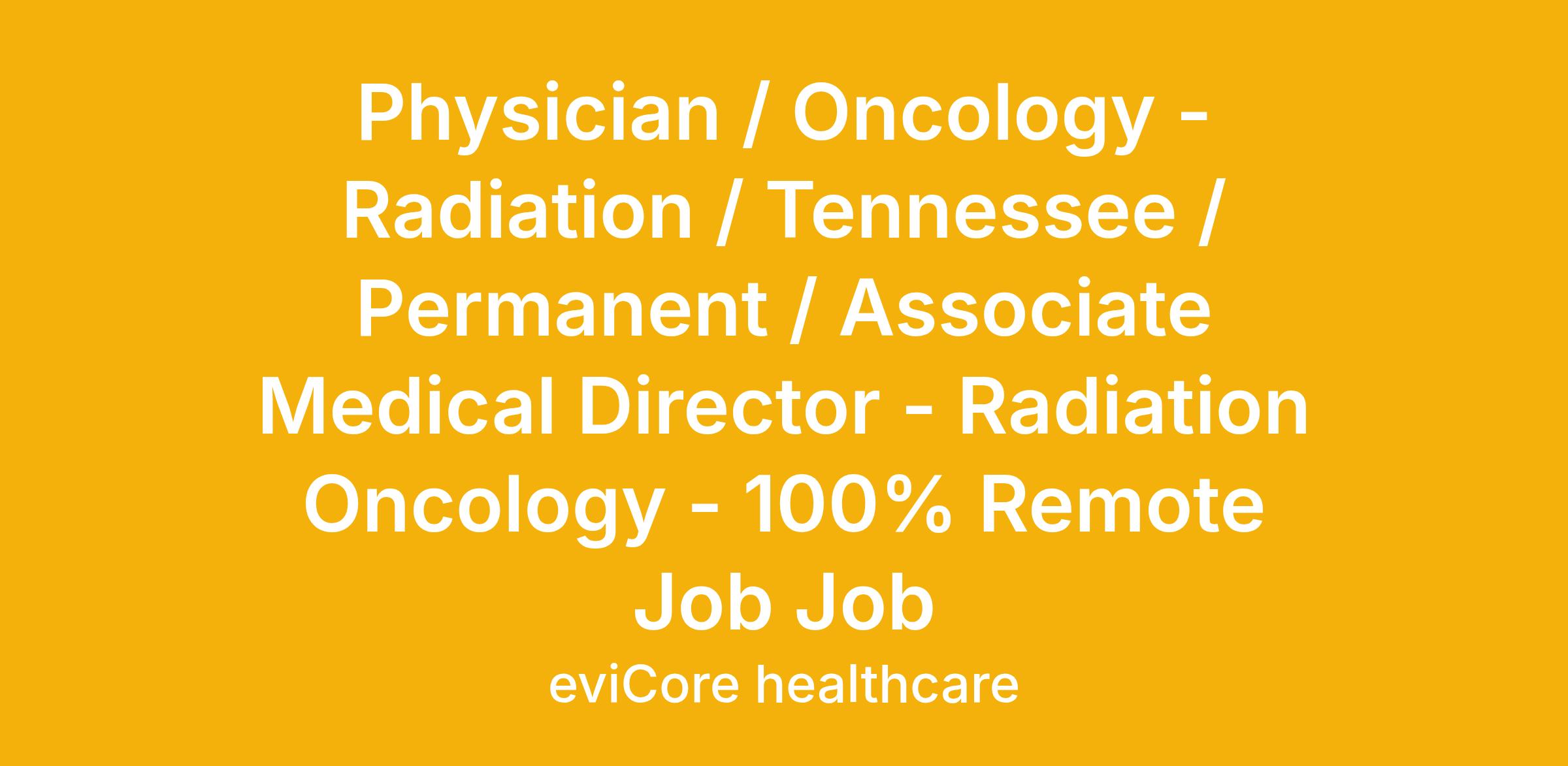 Physician / Oncology - Radiation / Tennessee / Permanent / Associate Medical Director - Radiation Oncology - 100% Remote Job Job