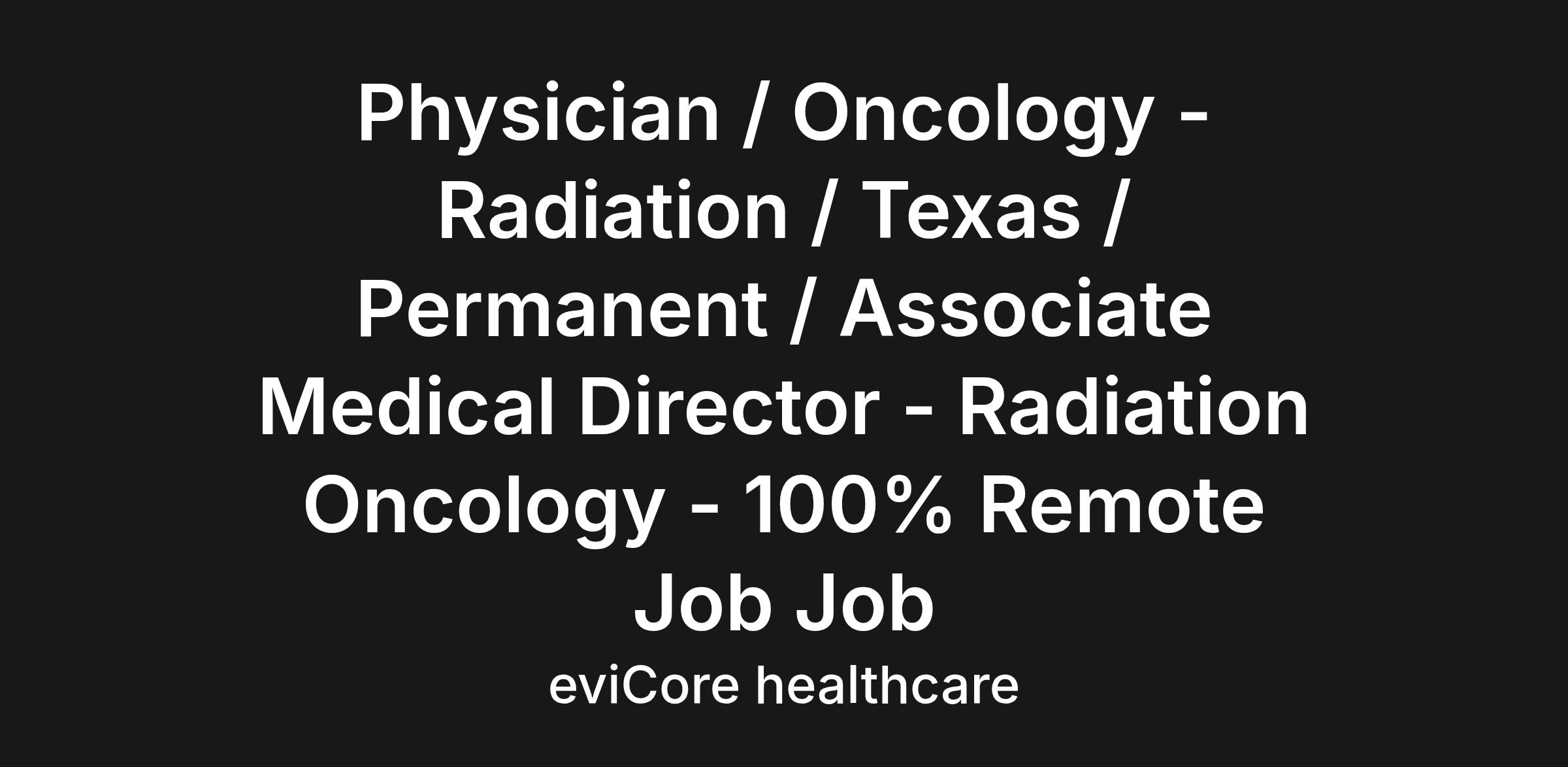 Physician / Oncology - Radiation / Texas / Permanent / Associate Medical Director - Radiation Oncology - 100% Remote Job Job