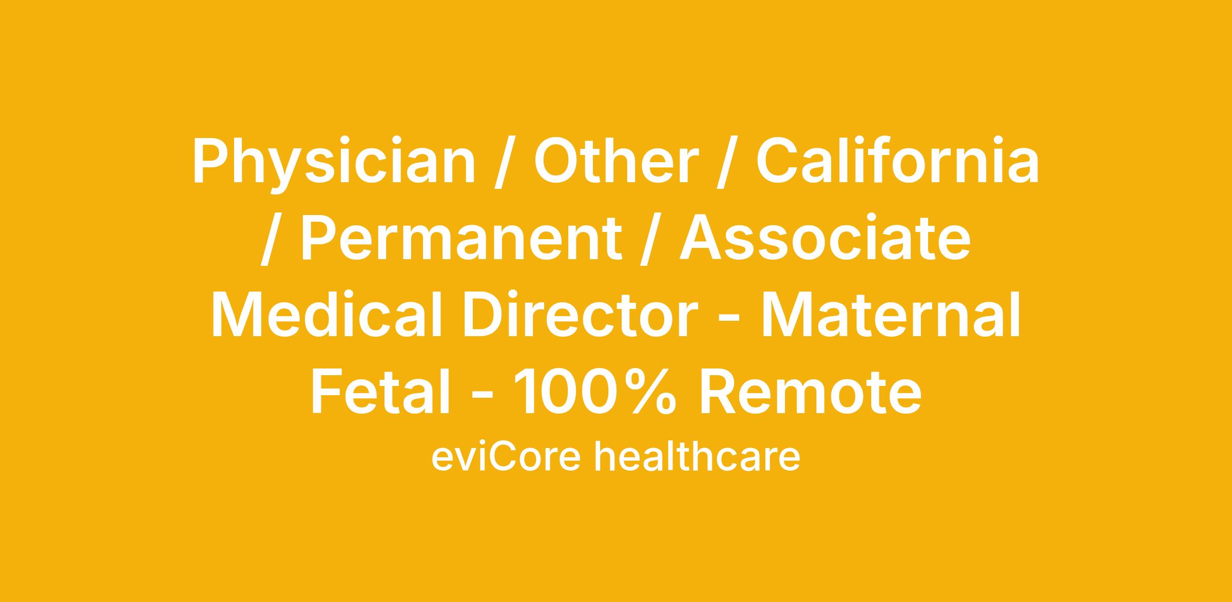 Physician / Other / California / Permanent / Associate Medical Director - Maternal Fetal - 100% Remote