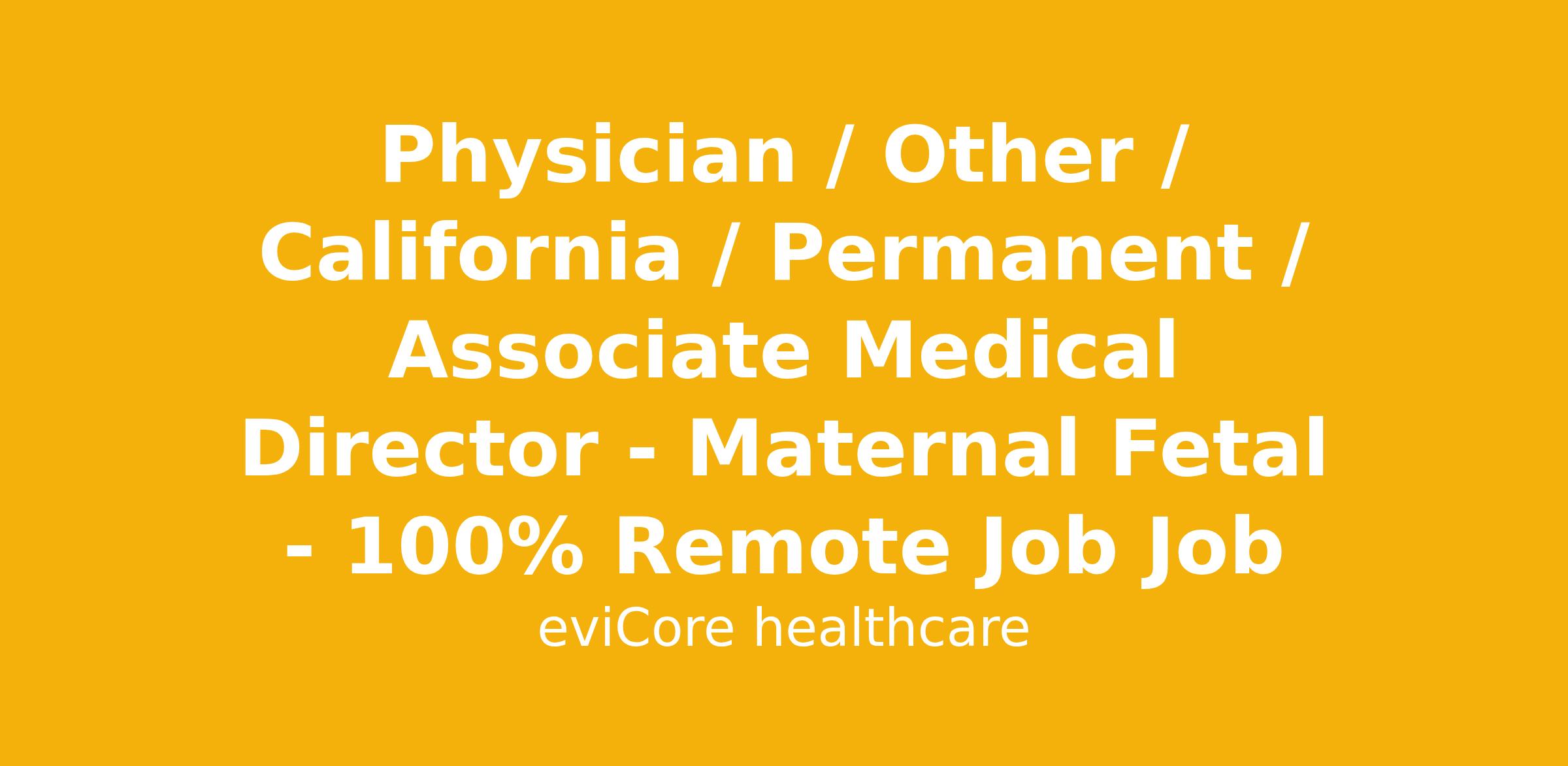 Physician / Other / California / Permanent / Associate Medical Director - Maternal Fetal - 100% Remote Job Job