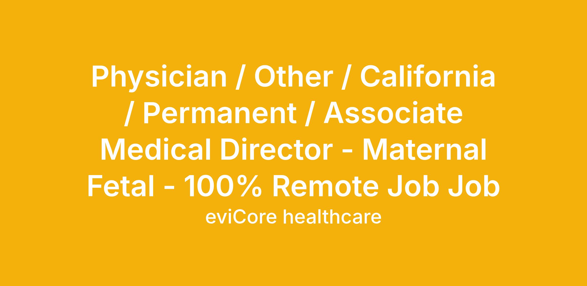 Physician / Other / California / Permanent / Associate Medical Director - Maternal Fetal - 100% Remote Job Job