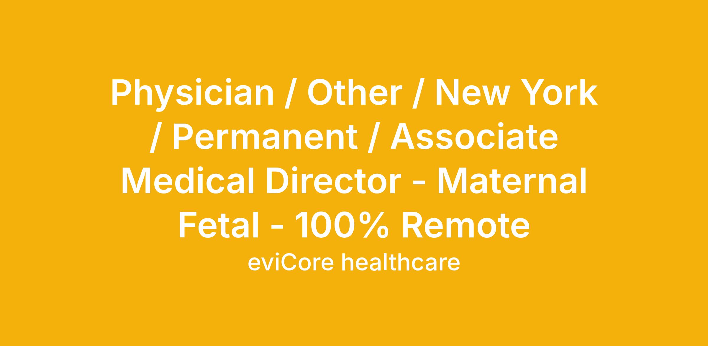 Physician / Other / New York / Permanent / Associate Medical Director - Maternal Fetal - 100% Remote