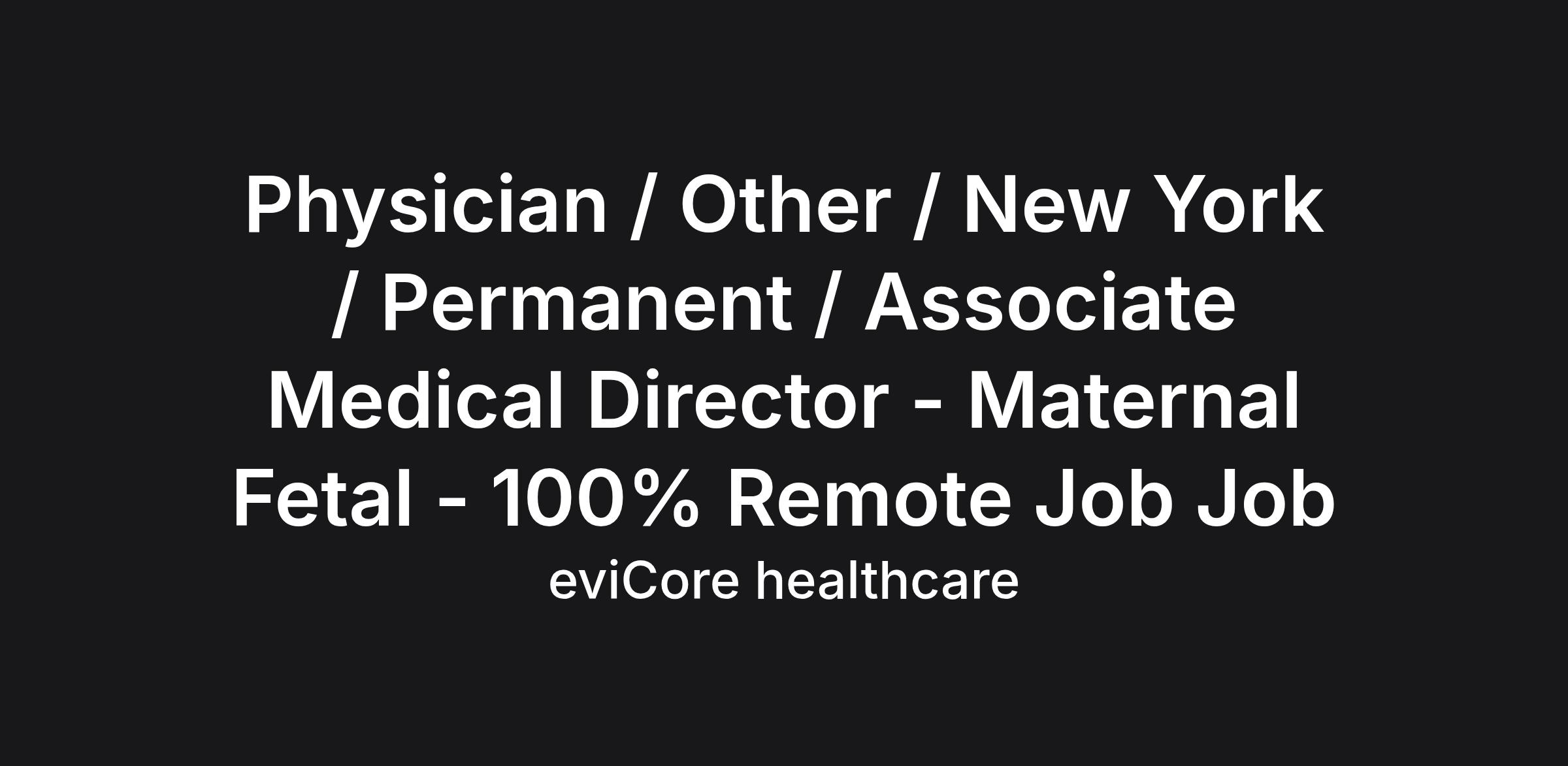 Physician / Other / New York / Permanent / Associate Medical Director - Maternal Fetal - 100% Remote Job Job