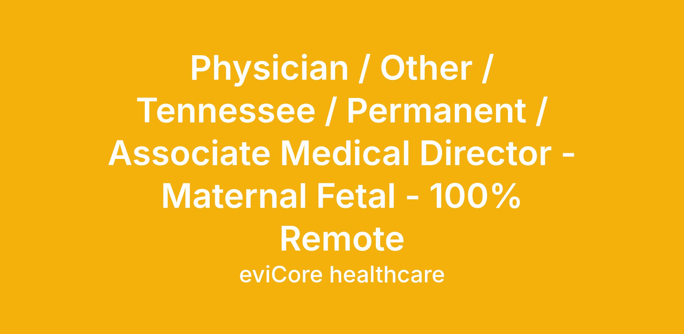 Physician / Other / Tennessee / Permanent / Associate Medical Director - Maternal Fetal - 100% Remote
