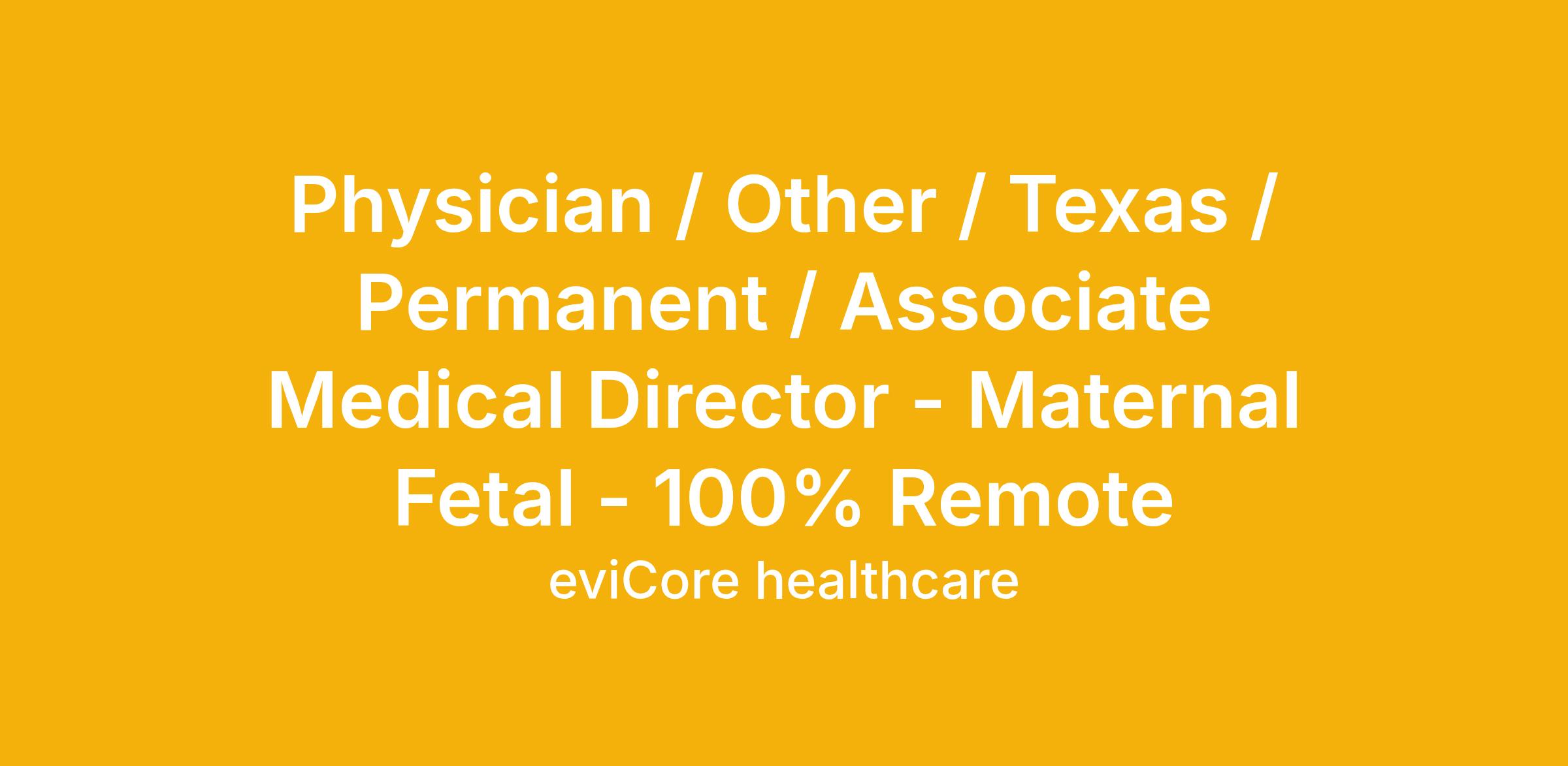 Physician / Other / Texas / Permanent / Associate Medical Director - Maternal Fetal - 100% Remote