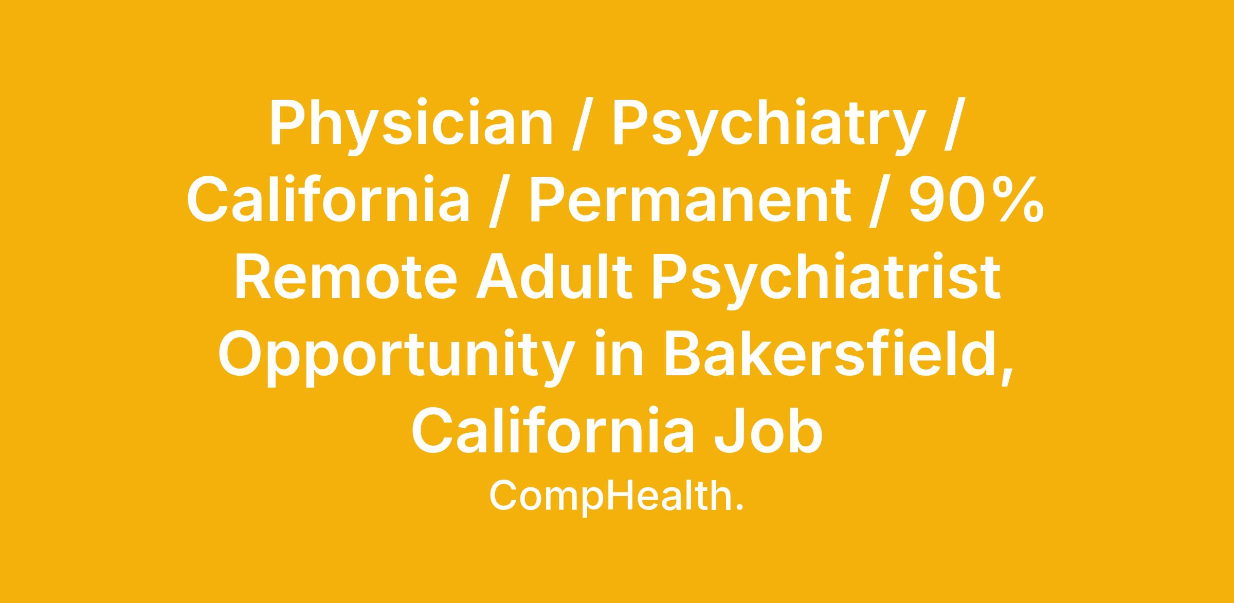 Physician / Psychiatry / California / Permanent / 90% Remote Adult Psychiatrist Opportunity in Bakersfield, California Job