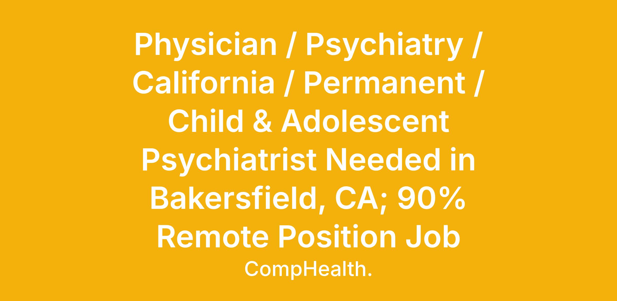 Physician / Psychiatry / California / Permanent / Child & Adolescent Psychiatrist Needed in Bakersfield, CA; 90% Remote Position Job