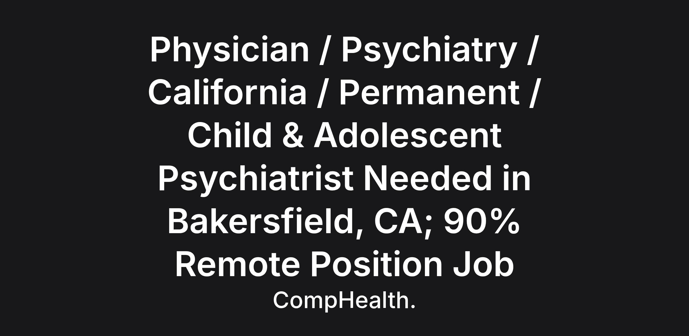Physician / Psychiatry / California / Permanent / Child & Adolescent Psychiatrist Needed in Bakersfield, CA; 90% Remote Position Job