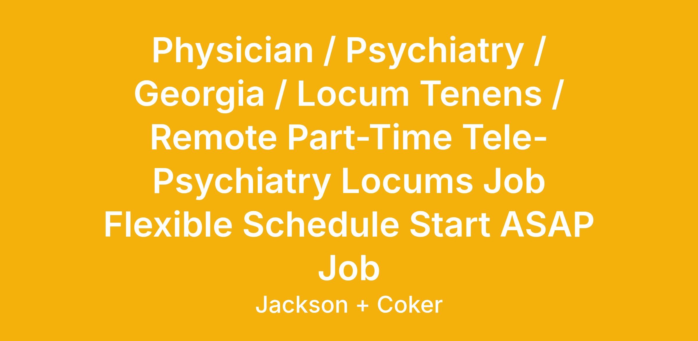 Physician / Psychiatry / Georgia / Locum Tenens / Remote Part-Time Tele-Psychiatry Locums Job Flexible Schedule Start ASAP Job