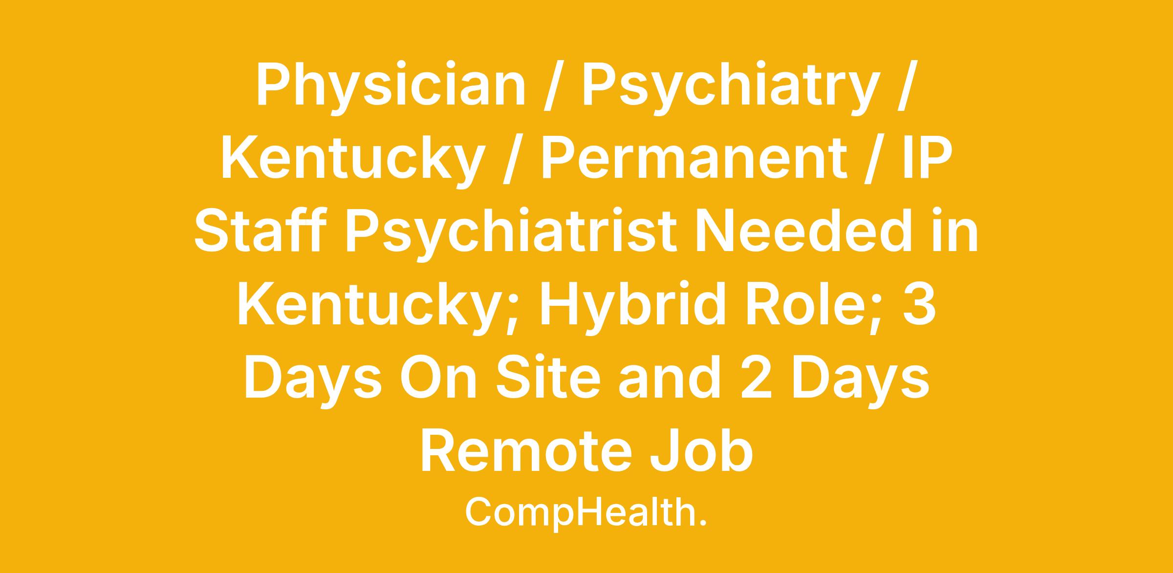 Physician / Psychiatry / Kentucky / Permanent / IP Staff Psychiatrist Needed in Kentucky; Hybrid Role; 3 Days On Site and 2 Days Remote Job