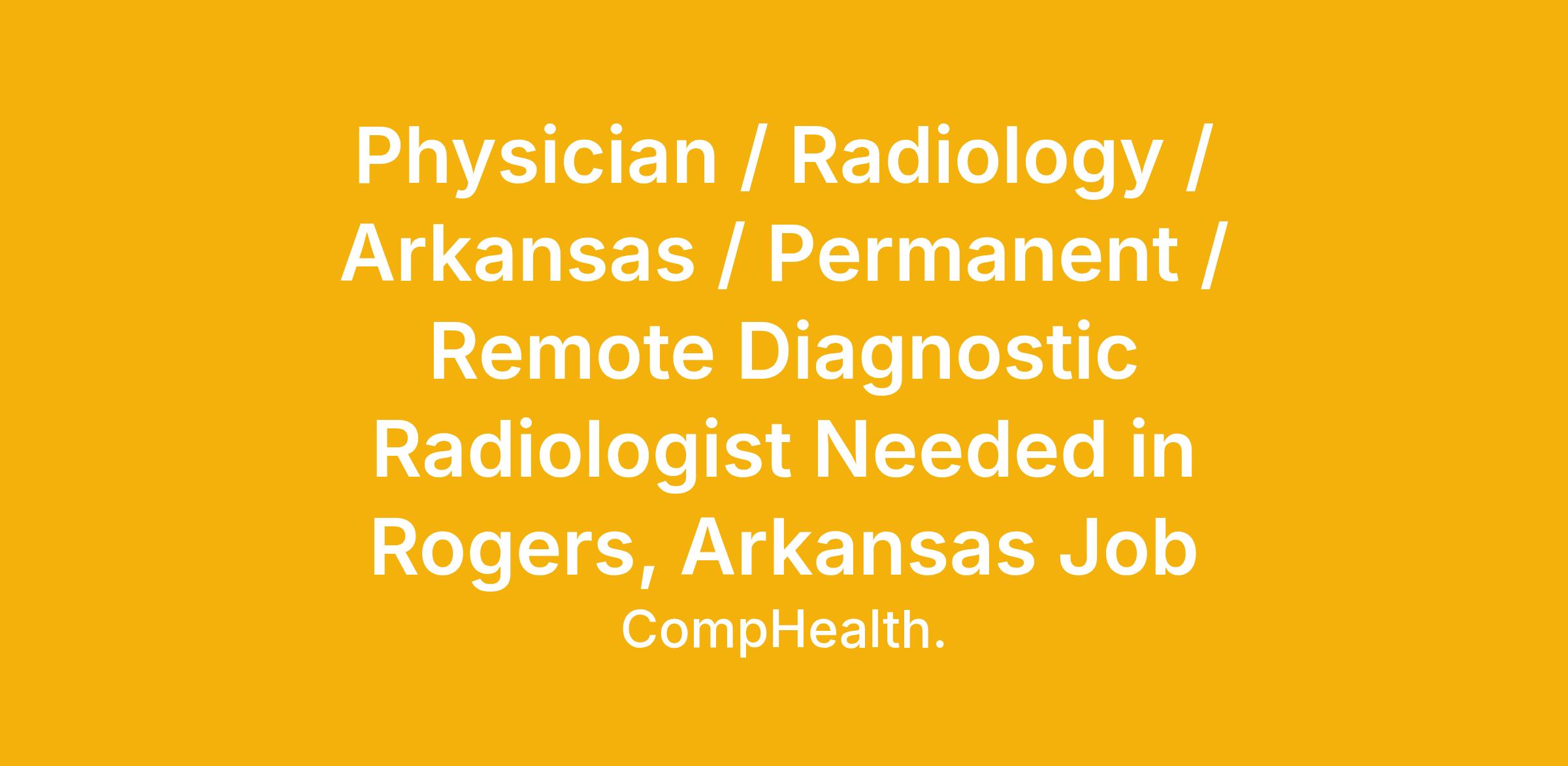 Physician / Radiology / Arkansas / Permanent / Remote Diagnostic Radiologist Needed in Rogers, Arkansas Job
